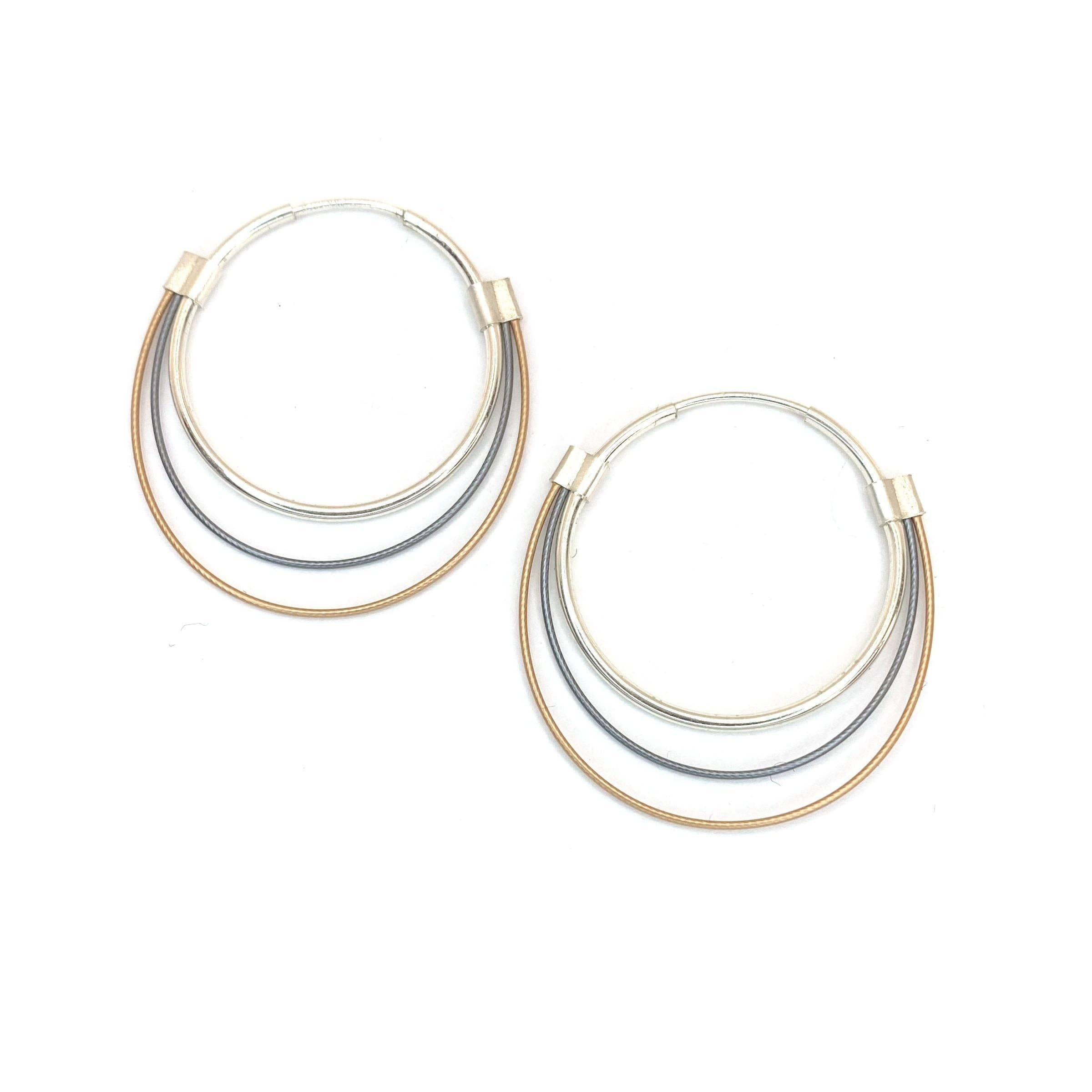 Elk MPR-sieraad van Meghan Patrice Riley wordt met de hand vervaardigd in het MPR Atelier in Brooklyn, New York door getrainde kunstenaars en metaalsmeden. Door metalen te mengen met textieltechnieken, experimenteer ik met klassieke, elementaire materialen zoals onze klassieke nylon-gecoate roestvrijstalen kabeldraad vermengd met fijne metalen en semi-edelstenen om ze opnieuw te interpreteren om sculpturale, eigentijdse sieraden te creëren die zowel vrouwelijk, luxueus en aantrekkelijk zijn als ontworpen voor draagbaarheid en duurzaamheid. We werken met nylon-gecoate roestvrijstalen kabel die is gecoat met fijne metalen zoals 24k geelgoud en sterling zilver. Deze kleine kabel ziet eruit als een draad, maar is eigenlijk 49 miniatuurdraden aan elkaar geweven om een monofilament-achtige miniatuur roestvrijstalen kabel te maken die zacht is als een textiel maar een supersterke kern van staal heeft. Het fabricageproces van de kabel is vergelijkbaar met dat van kabels voor hangbruggen die zijn ontworpen om met de verschuivende platen van de aarde te bewegen om niet in te storten maar te zwaaien met beweging.