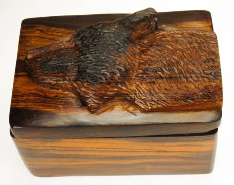 IJzerhoutsnijwerk is een unieke vorm van kunst uit de Sonorawoestijn in Zuid-Arizona en Noord-Mexico. Het werd met de hand gemaakt van woestijnijzerhout, een zeer dicht en zwaar hout van intrigerende oorsprong. Om geschikt te zijn voor houtsnijwerk, moet het worden blootgesteld aan de extreme klimatologische omstandigheden die alleen in de woestijn voorkomen. Jarenlange blootstelling in deze hete, droge omgeving zorgt ervoor dat de natuurlijke harsen zich verzamelen, condenseren en uitharden, waardoor het hout wordt omgezet in zeer dicht en zwaar ijzerhout. De regering heeft het oogsten van levende ijzerhoutbomen verboden, waardoor de ambachtslieden uitgebreid zijn gaan zoeken naar natuurlijk omgevallen bomen. Groen hout is niet geschikt of wordt niet gebruikt voor houtsnijwerk. IJzerhoutsnijwerk is een buitengewoon veeleisende kunstvorm die is ontstaan door de Seri-indianen, een kleine stam die al duizenden jaren in de grote Sonorawoestijn woont. Zodra het hout is verzameld, wordt elk stuk met de hand gemaakt met behulp van zeer eenvoudige gereedschappen. Het vereist vele uren snijden, met de hand schuren en polijsten, plus een artistiek „oog” om de prachtige burl en kenmerkende nerf die inherent zijn aan Ironwood effectief vast te leggen. Het resultaat van dit handwerk is dat geen twee stukken identiek zijn. Er is een beperkt aanbod van echt ijzerhout en een afnemend aantal houtsnijders.