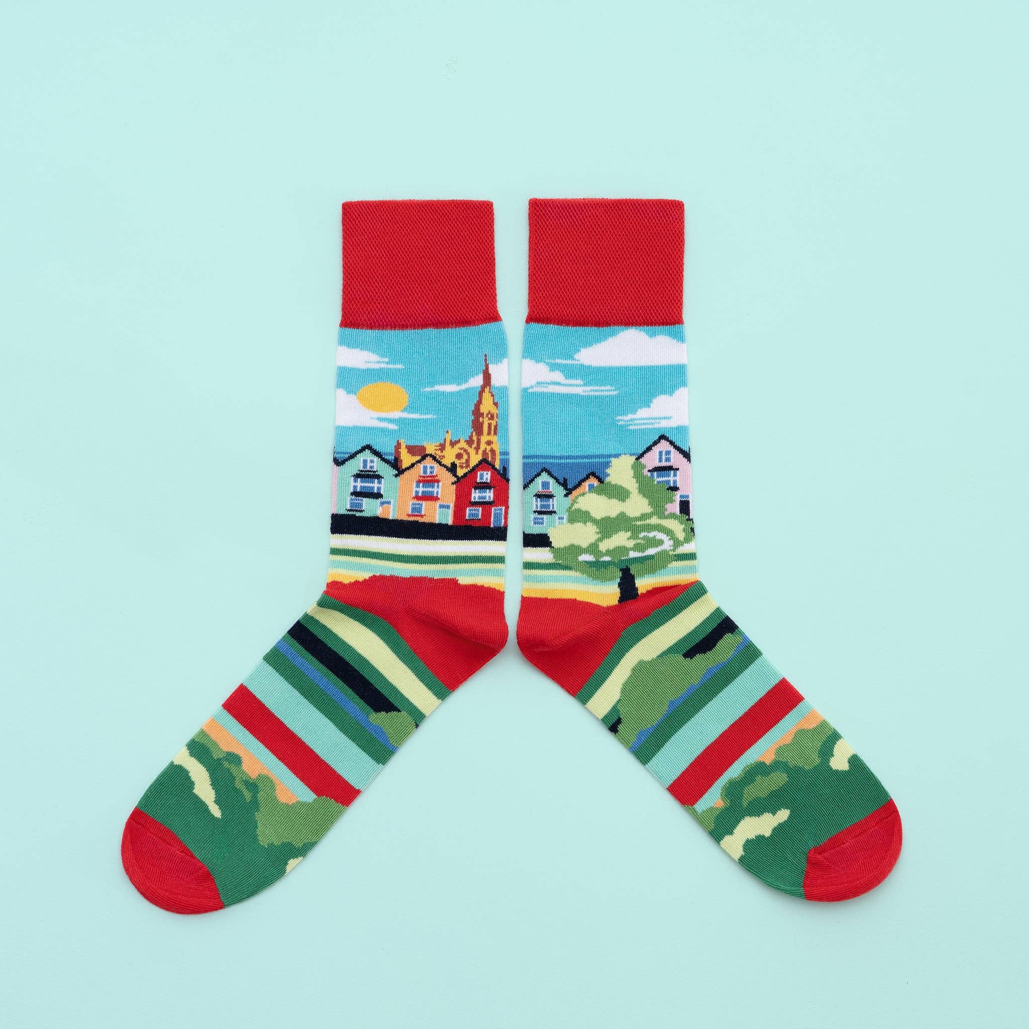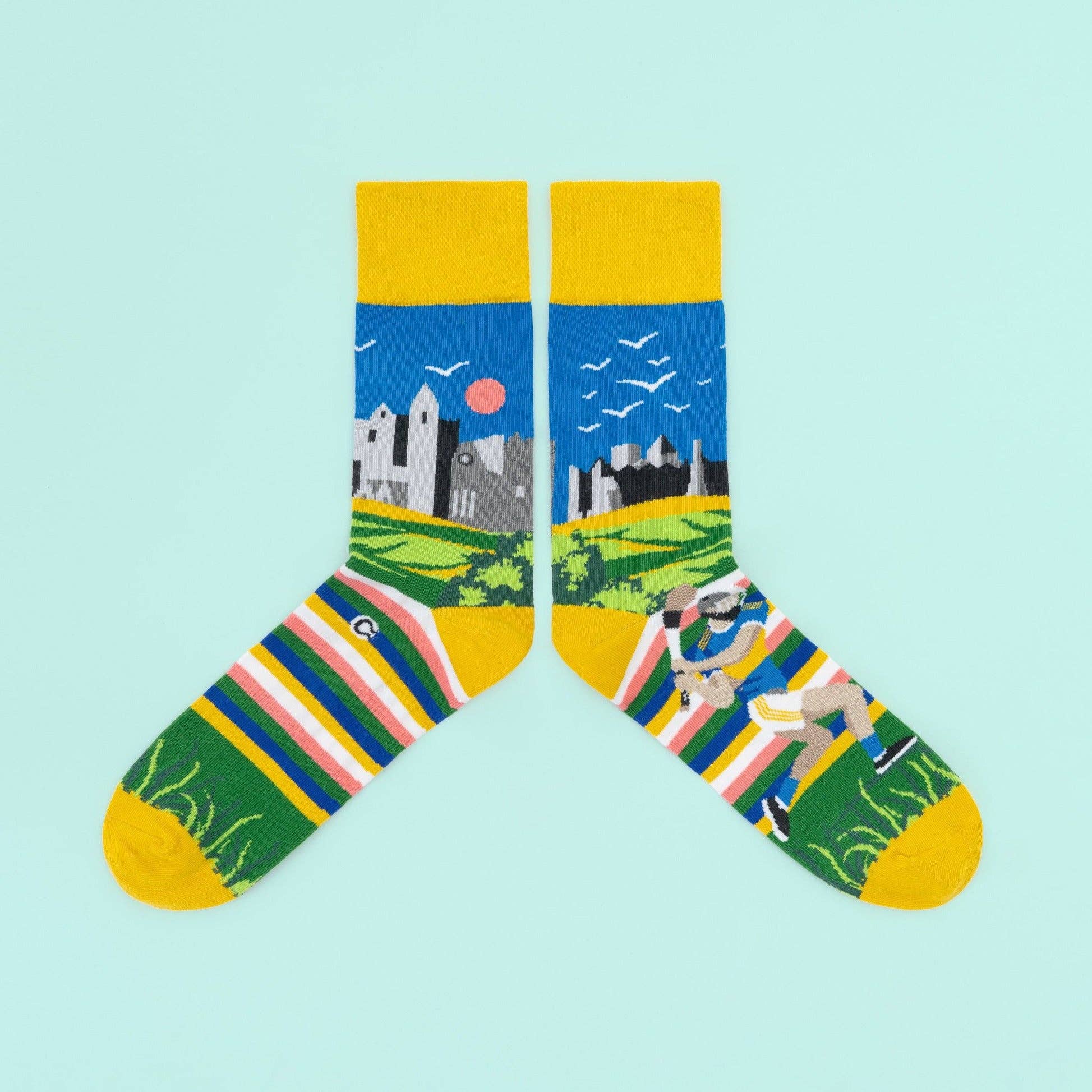 Ierland Sokken voor je Hart & Ziel. We creëren Unieke Unisex panoramische sokken die prachtige bezienswaardigheden en plaatsen van Ierland vieren, vanuit onze studio in Dublin. We gebruiken alleen het beste gekamde katoen in je sokken, dat Oekotex 100 gecertificeerd is, dus goed voor jou en het milieu. Al onze ontwerpen zijn 360-graden ontwerpen, zonder herhalingen!
