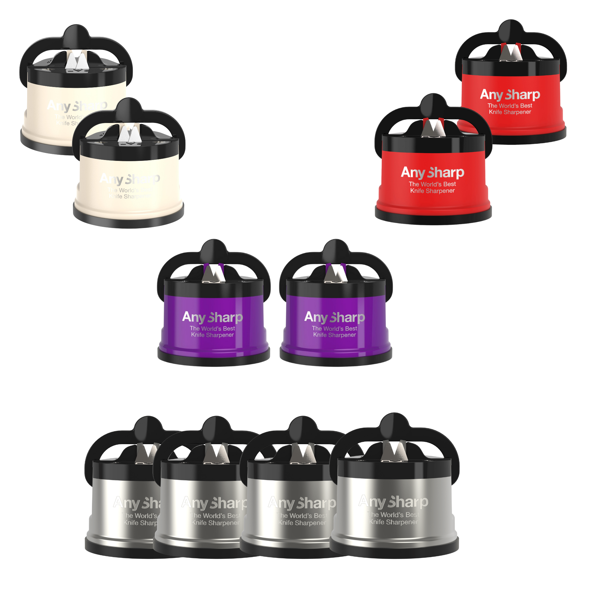 Na de lancering in 2009 innoveerde AnySharp de wereldwijde bestekindustrie en verdiende snel zijn reputatie als „The World's Best Messenslijper”. Het heeft tot nu toe miljoenen verkocht en is de #1 verkopende slijper in Europa, waar het is onderschreven door topkoks, waaronder Ken Homes, Jamie Oliver en Rosemary Schrager. We zijn er trots op te kunnen zeggen dat de wereldberoemde chef-kok Alain Ducasse dol is op zijn AnySharp en deze gebruikt in Alain Ducasse au Plaza Athenee, een van zijn vele restaurants met een Michelin-ster. De missie van AnySharp is om innovatieve producten te maken die gemakkelijk te gebruiken zijn en briljant werken. De slijpproducten maken de scherpe messen en gereedschappen mogelijk die het werk gemakkelijk en veilig maken, en helpen ook voedsel vers te blijven en er geweldig uit te zien! Het verjongt vrijwel elk mes veilig en handsfree: een paar lichte slagen en binnen enkele seconden zijn messen scherp als nieuw. Voordelen van detailhandelaren van het dragen van AnySharp -Herkenbaar merk, met belangrijke goedkeuringen, erkenning en onderscheidingen van derden -Producten van professionele kwaliteit tegen een concurrerende en waardevolle prijs -Een veelzijdige en groeiende productlijn -Toegang tot verbluffende marketingmiddelen om producten te presenteren -Incrementele verkoop en winstgevendheid „Ik gebruik graag AnySharp!