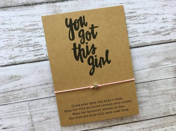 Deze minimalistische armbanden zijn individueel handgemaakt en vormen de perfecte cadeaus voor elke speciale gelegenheid. De legende zegt dat men gelooft dat de drager een wens moet doen terwijl hij de armband vastbindt, en wanneer de armband op natuurlijke wijze eraf valt, wordt gezegd dat hun wens klaar is om uit te komen. Elke armband is gemaakt van een enkele streng van 100% biologisch afbreekbaar glad koord. Deze armbanden hebben geen sluiting; ze zijn bedoeld om vast te binden.