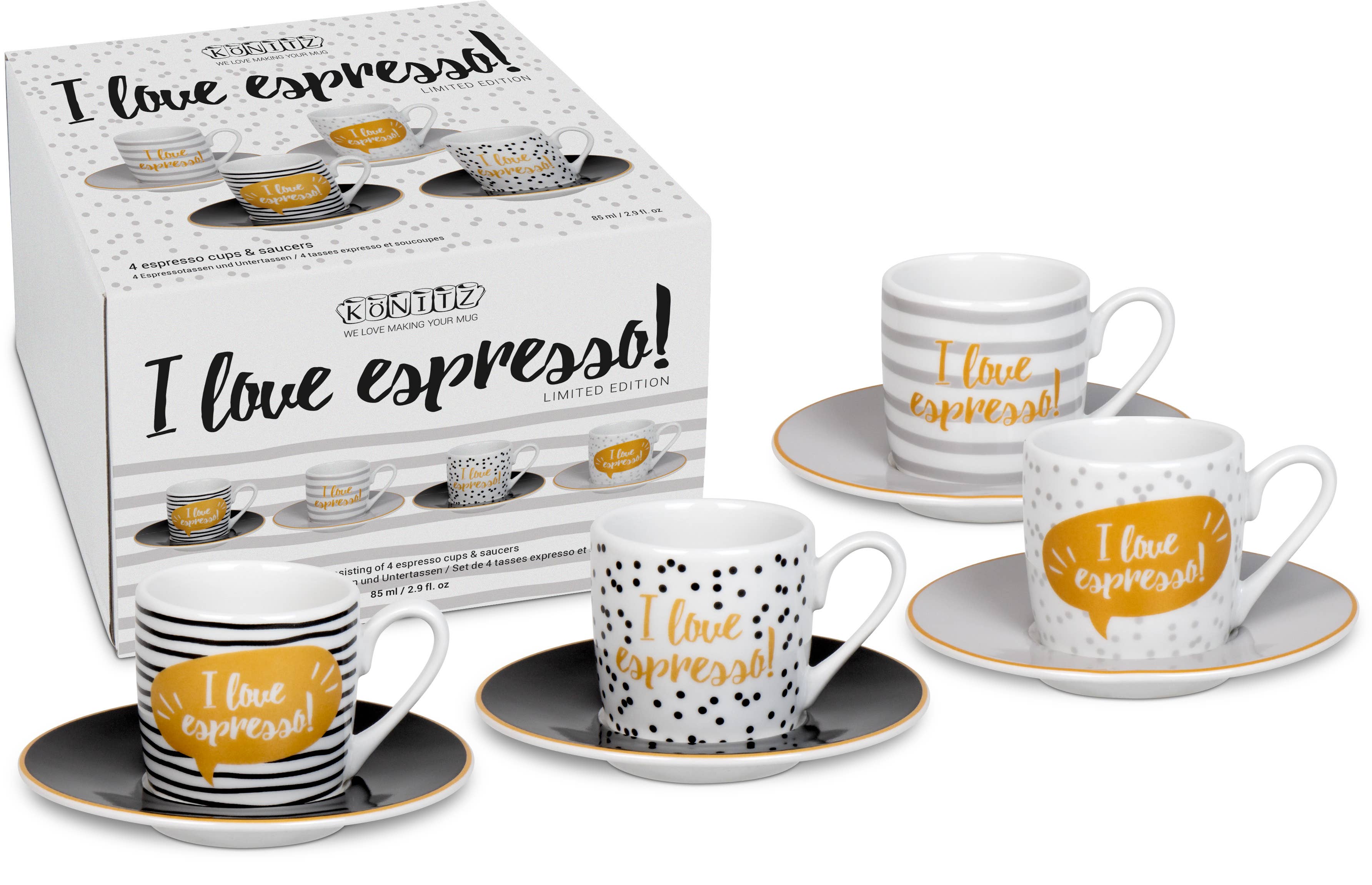 Sinds 1909 vervaardigt Könitz Porzellan GmbH in Thüringen met passie, precisie en tijdloos design fijn porselein. Van elegante mokken tot exclusieve collecties, wij brengen ideeën tot leven met ongeëvenaarde expertise, van concept, ontwerp, productie tot logistiek. Ons creatieve, meertalige team werkt nauw samen met klanten wereldwijd en levert gepersonaliseerde oplossingen die indruk maken. Vermaarde musea zoals SF MOMA, Tate Modern en Museo del Prado, evenals premium merken zoals Porsche en Bentley, vertrouwen op ons vakmanschap. Naast op maat gemaakte bedrijfsontwerpen bieden we meer dan 700 interne creaties die klaar zijn om gepersonaliseerd te worden. Kwaliteit staat centraal in alles wat we doen. Onze mokken zijn duurzaam, vaatwasser- en magnetronbestendig en afgewerkt met briljante, langdurige oppervlakken in glanzende, matte, metallic of tactiele afwerkingen, waardoor elk stuk een statement maakt. Van kleine aangepaste oplagen vanaf 96 stuks tot grote bestellingen, wij combineren snelheid, flexibiliteit en betrouwbaarheid. Duurzaamheid, voedselveiligheid en verantwoorde productie in Europa en Azië zijn integraal aan onze belofte. Könitz Porzellan brengt erfgoed en innovatie samen om porselein te creëren dat u zult koesteren.