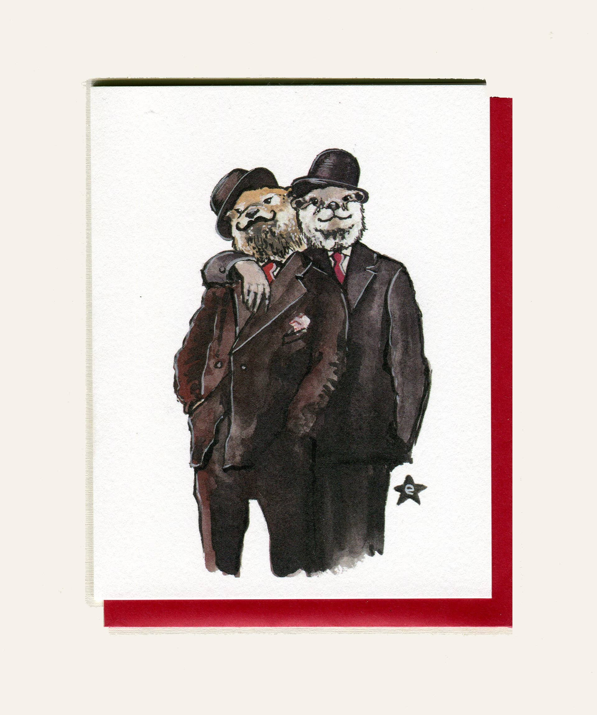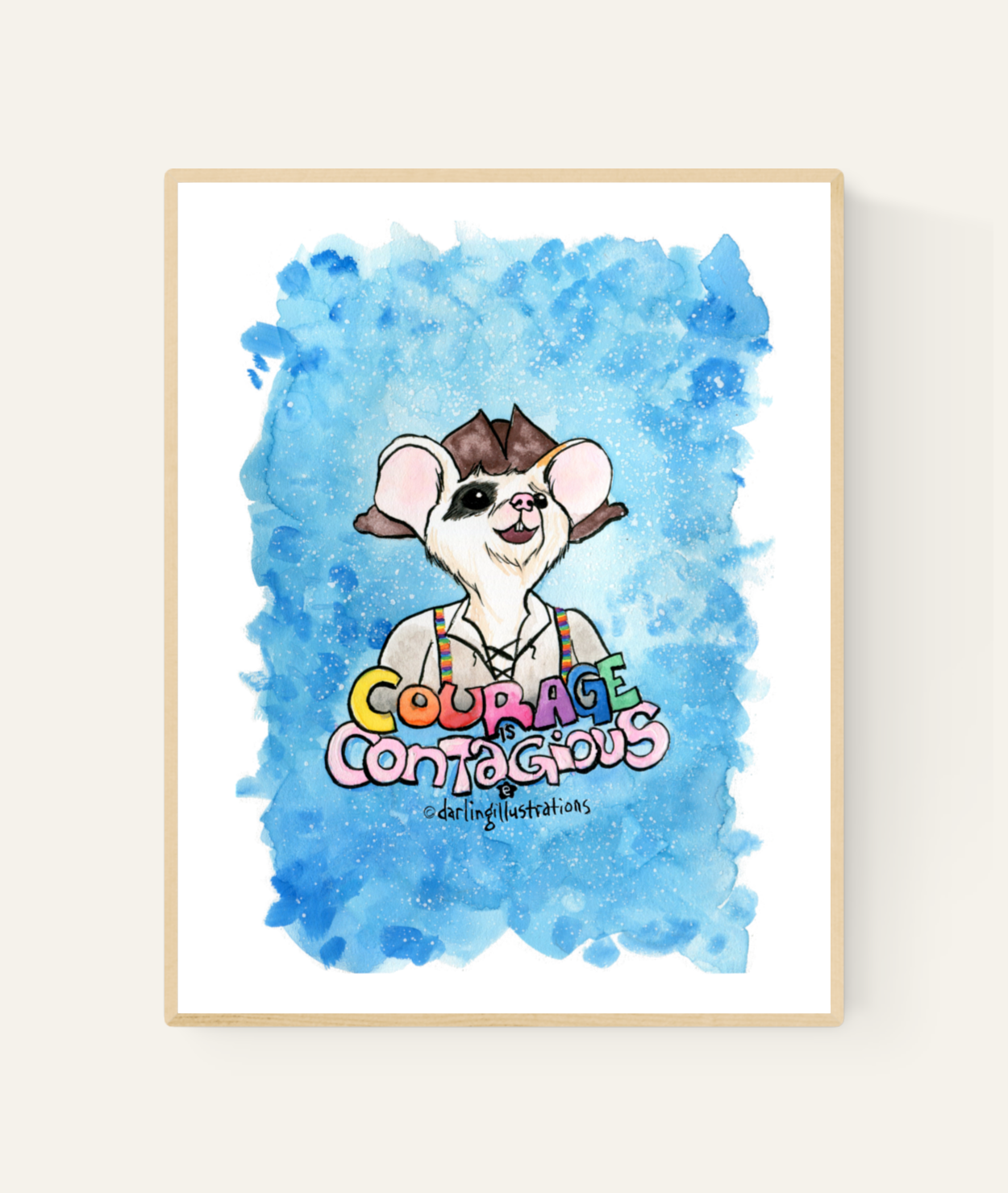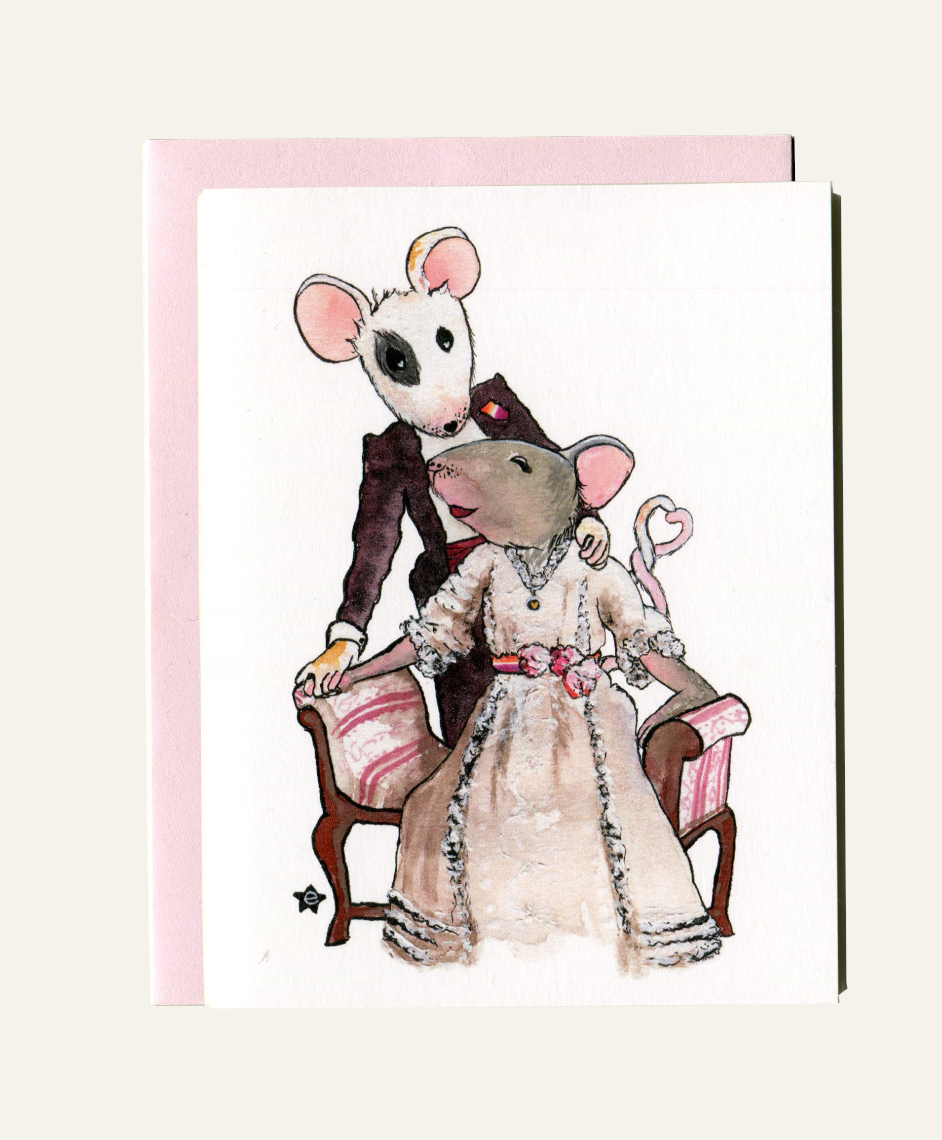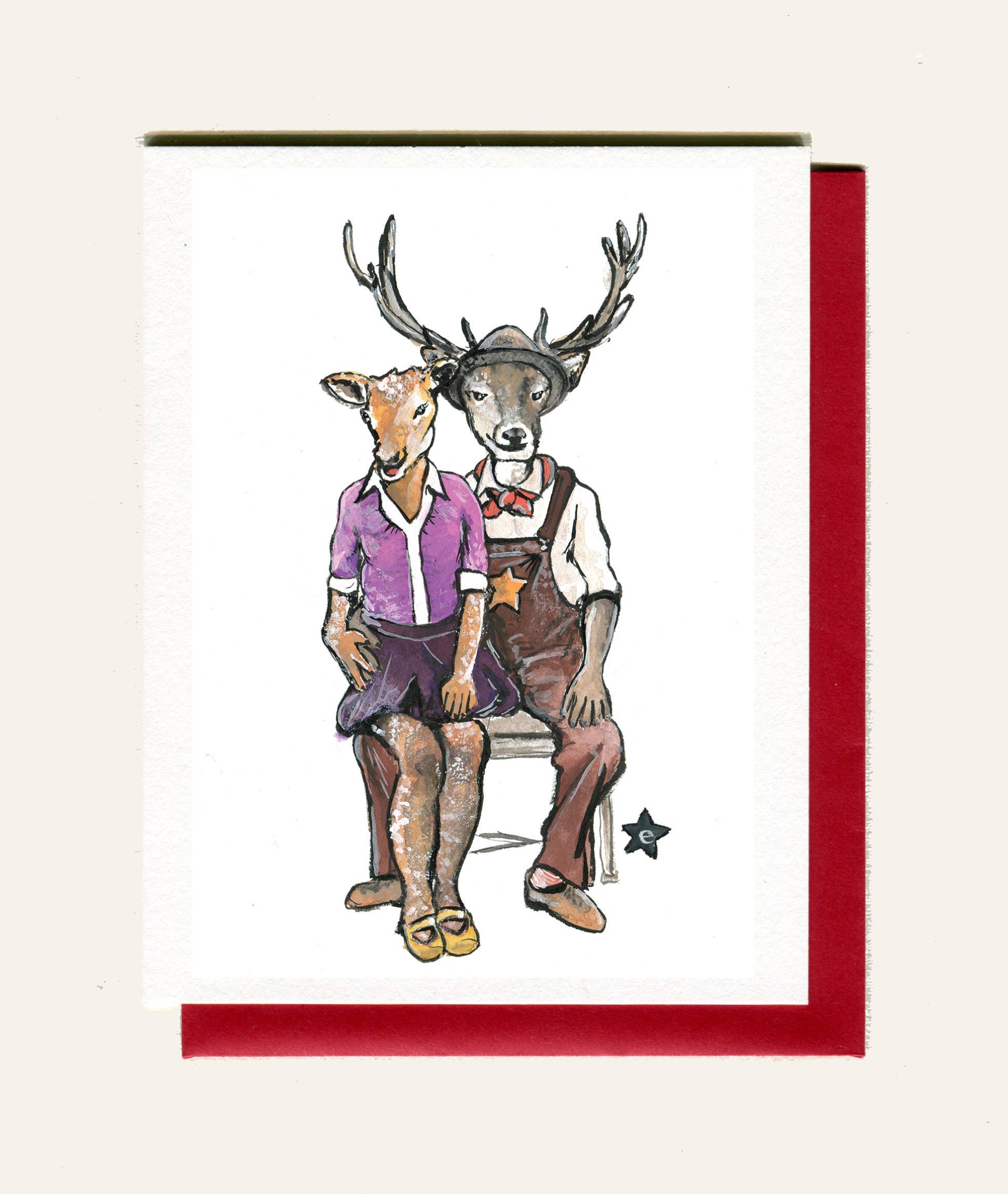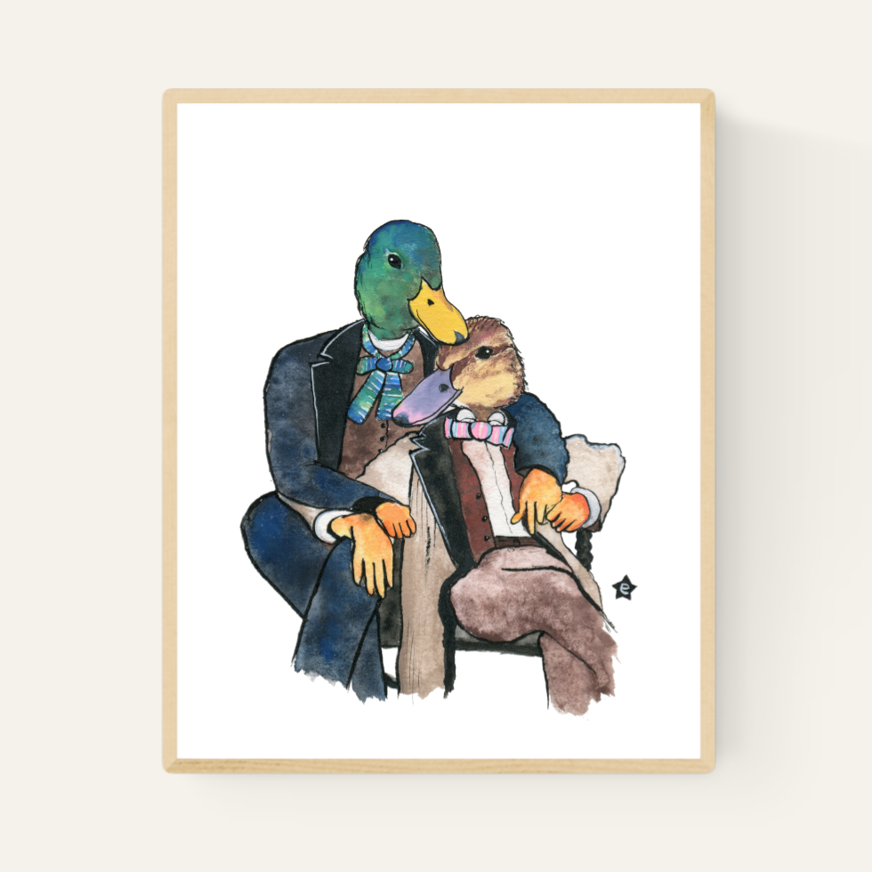 Erin Darling is de kunstenaar achter Darling Illustrations. Ze is een verhalenverteller en illustrator uit Tacoma, WA die aquarel en inkt gebruikt om originele antropomorfe personages te delen. Als queer christen en alleenstaande moeder zijn thema's van gemeenschap en inclusiviteit belangrijk in haar werk. Erin is vooral bekend om haar Affectionate Animal-serie, waarin ze vintage foto's van echte mensen neemt en ze illustreert als queer sprookjesfiguren. Kaarten en kunstdrukken worden gemaakt met 100% windenergie en gedrukt in een kleine Amerikaanse drukkerij.