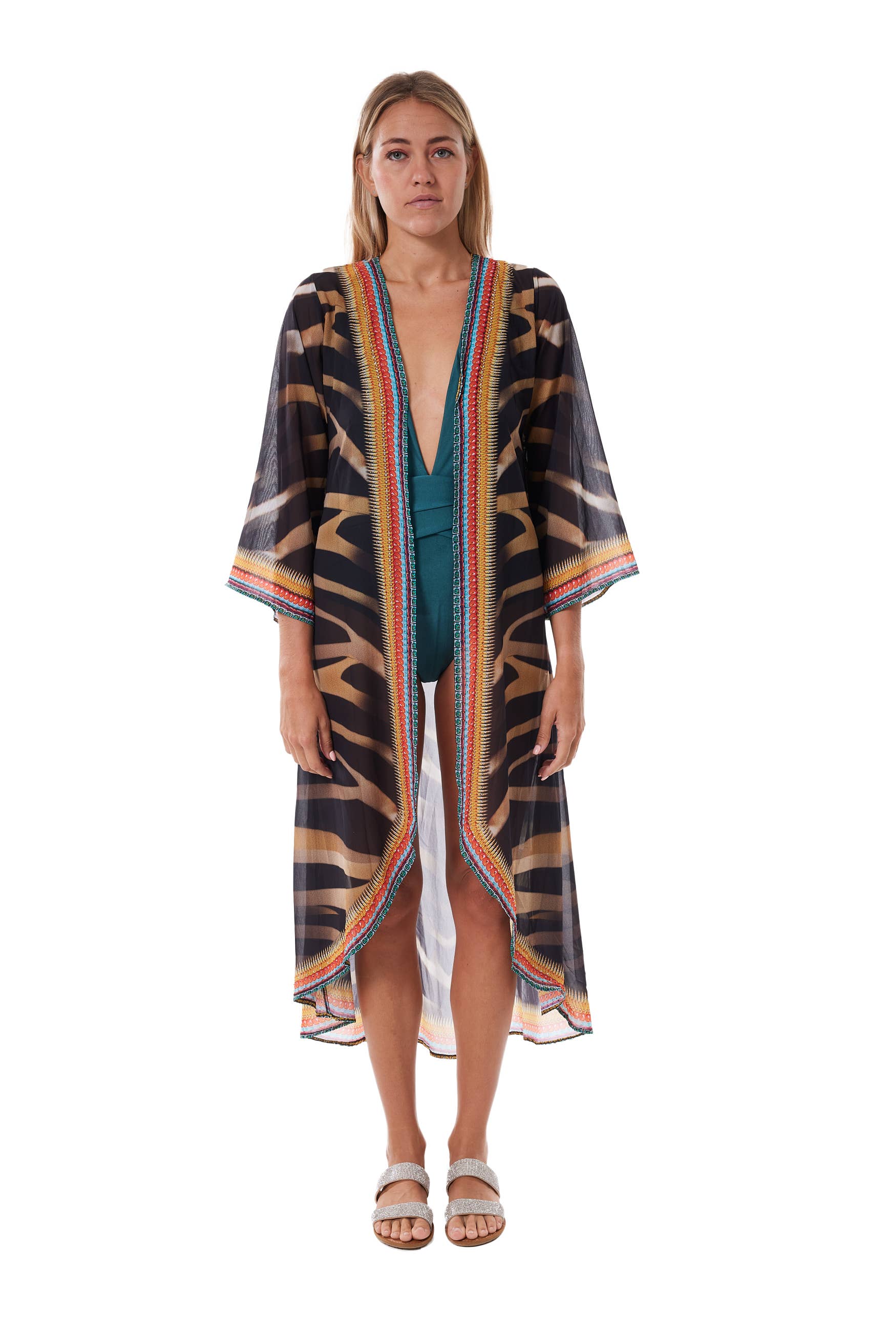 Ranee's kleding is meer dan een resortkleding, het vertelt een verhaal, het maakt een statement, het is geïnspireerd door verschillende culturen en is iets wat elke vrouw graag zou willen bezitten. Ranee's is gemaakt door een vrouw, voor alle vrouwen die dromen om zonder enige touwtjes op wolken te vliegen en er elke dag en overal prachtig uit willen zien. Ranee's prints zijn ontworpen door Miami-ontwerper Kiran Khiyani, en behoren uitsluitend toe aan Ranee's, zei dat je onze print niet zult vinden bij een andere groothandel. Kiran houdt van gedurfde prints en exotische kleuren. De kunst van het ontwerpen ligt in het combineren van zowel prints als kleuren op prachtige stoffen, samen met een perfecte styling en ingewikkelde details. Elk stuk is handgemaakt met enkele uren arbeid geïnvesteerd in elk stuk, individueel gesneden en gezaaid, en ingewikkelde versieringen maken ons stuk uniek. Ranee's kleding is perfect voor sociale evenementen, strand, cruise of vakantie. Het is een jurk die je nooit zult vergeten in te pakken.