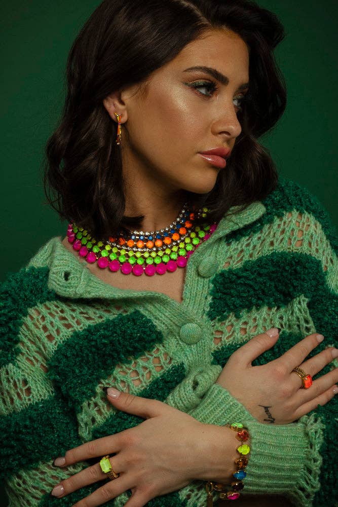 ***GEEN INVOERRECHTEN*** Opgericht in 2000 door Michelle Luterman Alfonso, is TOVA een sieradenmerk dat meer wil creëren dan alleen accessoires. Wij geloven dat sieraden een uitdrukking moeten zijn van je unieke persoonlijkheid, een manier om je individualiteit te tonen en een statement te maken. Daarom stoppen we onze passie in het maken van leuke, onderscheidende en adembenemende stukken die zeker de aandacht zullen trekken. Bij TOVA begrijpen we dat sieraden meer zijn dan alleen een versiering. Het is een vorm van zelfexpressie, een manier om je verhaal te vertellen zonder een woord te zeggen. Daarom stellen we onze collectie zorgvuldig samen om onverwachte combinaties van kleuren en getextureerde materialen te presenteren, geaccentueerd met heldere en levendige tinten. Van de fonkelende schittering van hoogwaardige kristallen, tot de aantrekkingskracht van halfedelstenen en de speelsheid van met de hand beschilderde emaille, onze ontwerpen zijn doordrenkt met een verrassende en speelse edge.