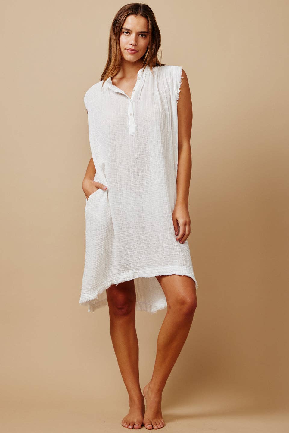 9SEED is ontworpen en gemaakt in Los Angeles met 100% katoenen gaas. We richten ons op duurzame natuurlijke stoffen met een schoon milieuvriendelijk verfproces, zodat we een prachtig product kunnen leveren aan onze trouwe klanten. Geïnspireerd door exotische locaties – de vroege ochtenddageraad in Tulum, de middaggolven in Montauk en de zonsonderganggolven in Malibu, zijn haar eenvoudige, gestroomlijnde silhouetten de essentie van moderne kleding. Je zult merken dat 9seed gemakkelijk overgaat van casual overdag naar diner-klaar, met de toevoeging van een riem, sexy sandalen en een prachtige armband.