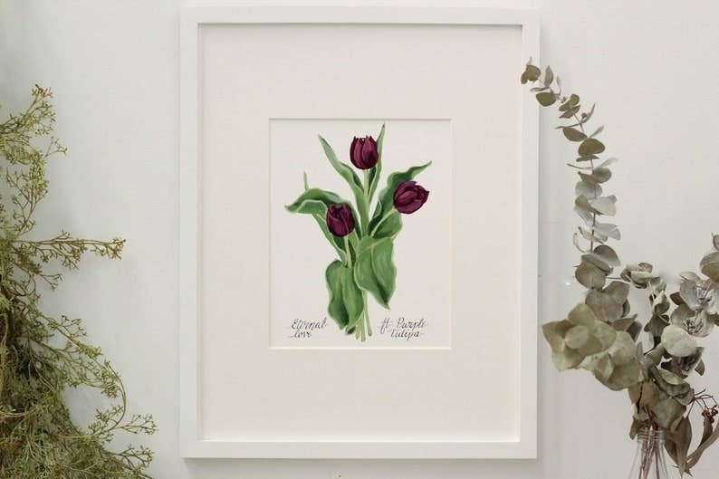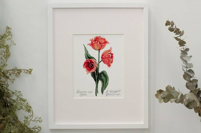 Meredith Raiford is een botanische schilder en muralist uit Athene, GA. In haar studiowerk specialiseert ze zich in floriografie en de historische taal van bloemen. Door de geschiedenis heen hebben culturen bloemen gebruikt om sentiment over te brengen wanneer woorden tekortkwamen. Veel van deze culturen gingen zelfs zo ver dat ze specifieke betekenissen toeschrijven aan verschillende bloemen en een hele beeldtaal van bloemen ontwikkelden. Elke bloemenprint in deze winkel is zorgvuldig in de winkel gemaakt en vertaald met behulp van bloemenwoordenboeken en gidsen die meer dan 1.000 verschillende soorten bloemen vertalen in floriografie.