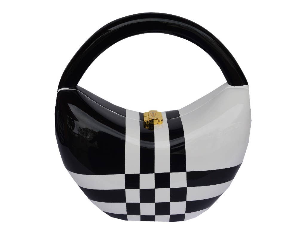 Timmy Woods, de visionair achter Timmy Woods Beverly Hills, heeft een merk gecreëerd dat creativiteit, vakmanschap en een vleugje speelsheid combineert. Sinds de lancering van het merk in 1990 is Timmy's missie geweest om te inspireren, te versterken en humor in de mode te brengen, terwijl ze een gevoel van verbinding tussen generaties bevordert. Haar handtassen zijn meer dan accessoires—het zijn erfstukken, doorgegeven van moeders op dochters, die herinneringen en stijl omvatten. Timmy's ontwerpfilosofie is geworteld in een liefde voor de natuur en organische schoonheid. Elk stuk is een verkenning van vormen en texturen, vooral in zijn houten handtassen, waar de natuurlijke nerf van het hout een sleutelrol speelt. Het houtsnijden is vergelijkbaar met een artistieke reis—geleid door de natuur zelf, waarbij het eindproduct zich vaak op een onverwachte maar perfecte manier onthult. Voor het lente/zomer seizoen omarmt Timmy Woods een tijdloos zwart-wit kleurenpalet, geaccentueerd met pastel polka dots, wat een speelse en verfijnde sfeer oproept.