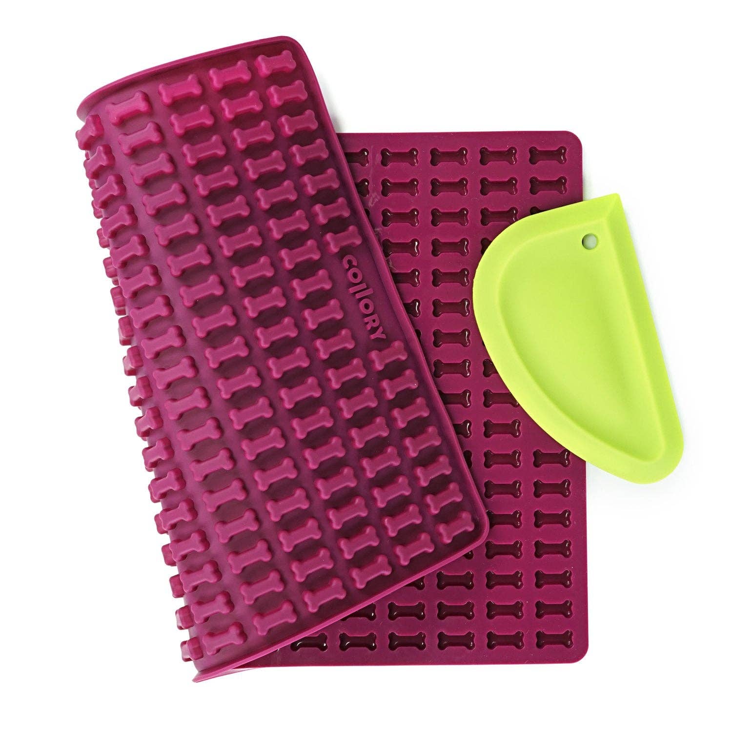 Bakken voor honden en katten. Nu kun je zelf bepalen wat er in de lekkernijen zit — zonder toevoegingen. Verwerk verse, gezonde en regionale ingrediënten tot vloeibaar deeg. Giet het vloeibare deeg op de Collory-bakmat, veeg het af met een schraper en zet het in de oven. Geen gedoe meer zoals het uitrollen en uitsnijden van deeg. Met de traktatiematten van Collory in een praktisch standaard bakplaatformaat maak je eindelijk snel en eenvoudig honderden minitraktaties in verschillende vormen met één bakproces. Ideaal voor mensen met allergieën! Duizenden enthousiaste klanten bakken al met onze BPA-vrije siliconen bakpannen voor hun gevoelige viervoetige vrienden. U kunt de ingrediënten individueel aanpassen aan de behoeften van uw hond en voedselintolerantie. En dat helemaal zonder granen!
