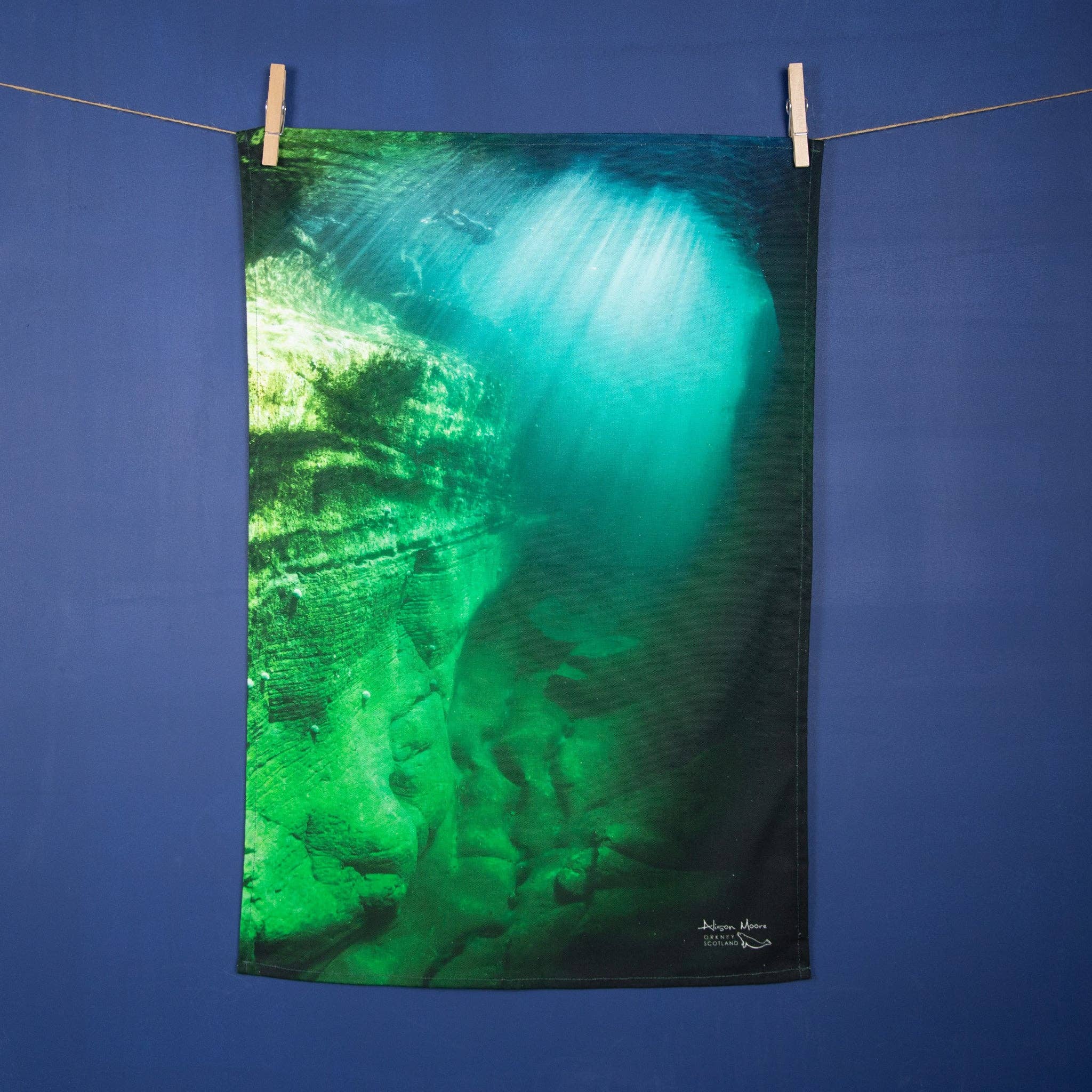 Als Alison geen prachtige sieraden maakt, is de kans groot dat je haar in de oceaan vindt rond haar Schotse eiland thuisland, duiken, freediven of snorkelen. Gezien de inspiratie die de natuur heeft gegeven voor Alison's werk in zilver en goud, was het misschien onvermijdelijk dat de unieke omgeving die ze tegenkomt onder het oppervlak van Orkney-wateren de nieuwe creatieve uitlaatklep van onderwaterfotografie zou aanwakkeren. Dit assortiment kaarten en huishoudartikelen creëert het perfecte cadeau voor zowel oceaanliefhebbers als zeezwemmers. We houden de oceaan graag vrij van plastic, dus je zult merken dat deze producten plasticvrij zijn!
