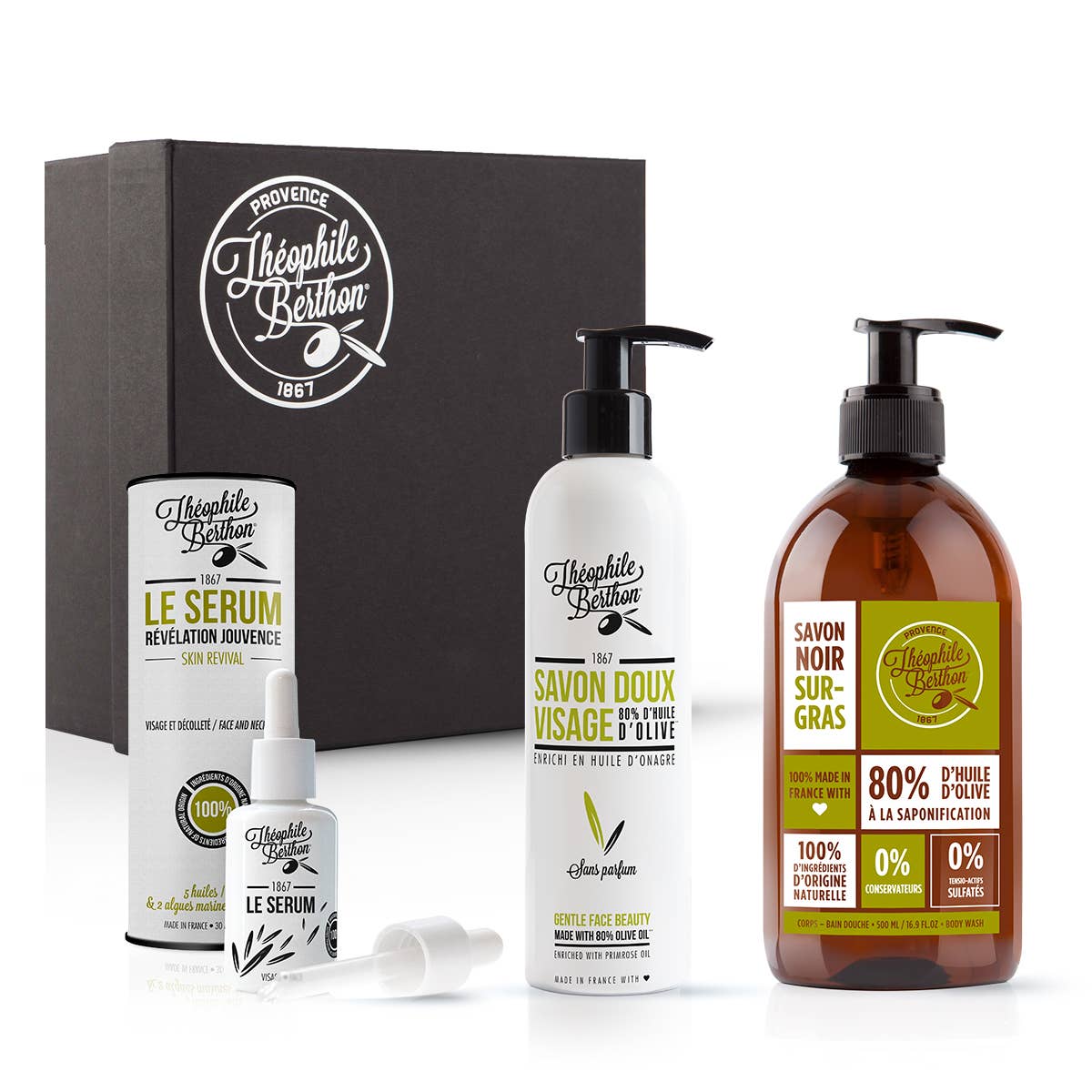 Théophile Berthon: van esthetisch welzijn tot emotioneel welzijn. De Théophile Berthon Savonnerie werd opgericht aan het einde van de 19e eeuw in het hart van de Provence. Op basis van onze knowhow, de productie van Marseillezeep in een ketel, wilden we deze voorouderlijke methode aanpassen aan de moderne behoeften van vandaag. Daarom hebben we een lijn van zeer hoogwaardige natuurlijke vloeibare zepen ontworpen, bestaande uit 80% olijfolie, zonder sulfaat en zonder conserveermiddelen. Door ons assortiment uit te breiden naar nog meer technische behandelingen gericht op het gezicht en lichaam, is prioriteit gegeven aan de kwaliteit van onze formuleringen. 100% gemaakt in Frankrijk, met een minimum van 98% en tot 100% natuurlijke ingrediënten, voor intelligente, redelijke, ecologische en gezonde cosmetica. Om tegemoet te komen aan een zoektocht naar holistisch welzijn, hebben we een nieuw assortiment ontwikkeld dat gewijd is aan emotioneel welzijn: onze collectie van ondergedompelde natuurlijke planten, L'Herbarium de Théophile.