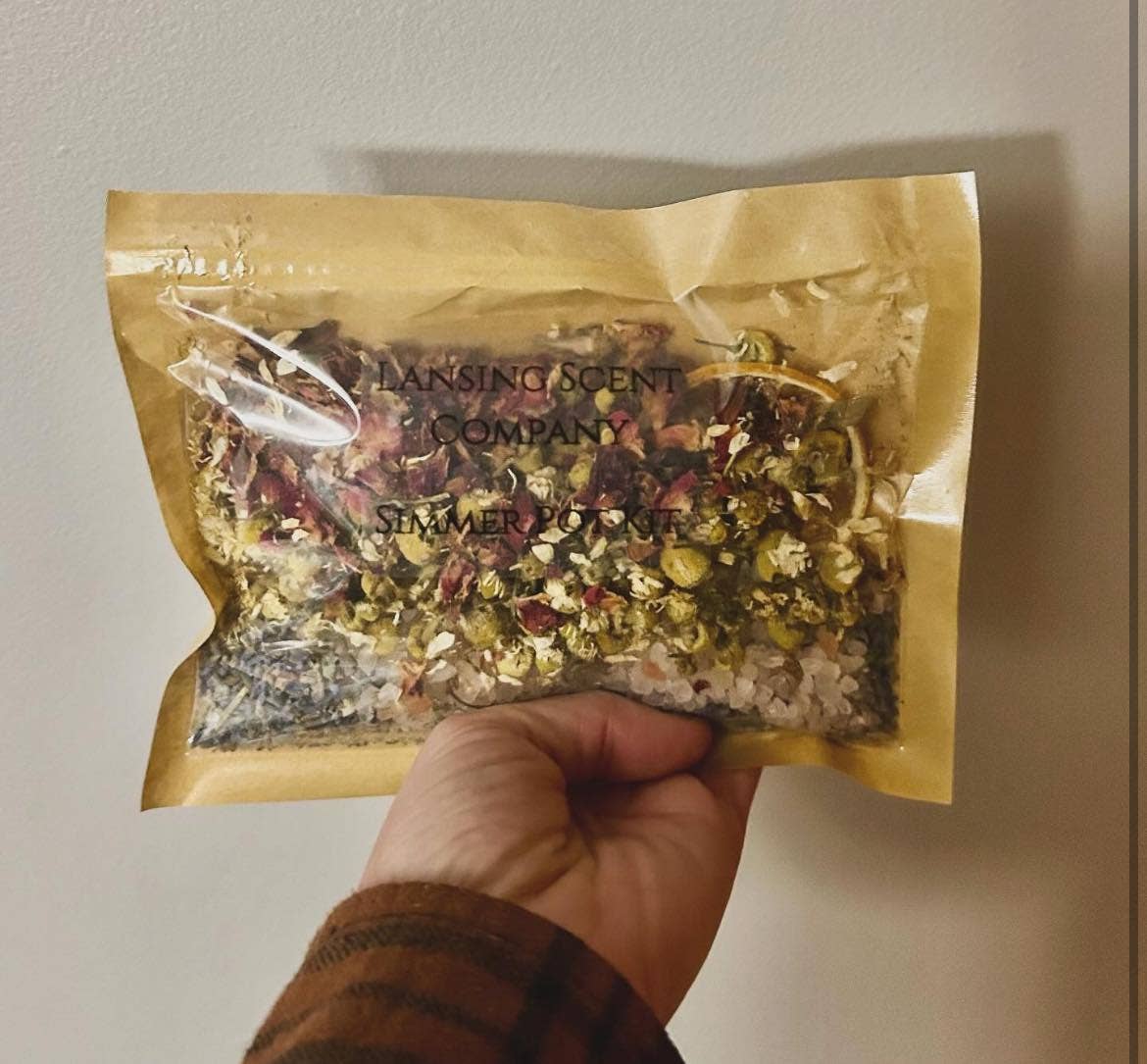 Lansing Scent Company is een volledig natuurlijk geurmerk gevestigd in Lansing, Michigan, gespecialiseerd in unieke geurende sudderpotpakketten! Simmer Potpacks, of potpourri op het fornuis, zijn uitstekende toevoegingen aan geschenkmanden of een op zichzelf staand cadeau! Lansing Scent Co. wordt gerund door één vrouw, Allie, die lerares, moeder en echtgenote is. Alle artikelen worden met de hand verpakt en alle ingrediënten worden in eigen huis gedehydrateerd.