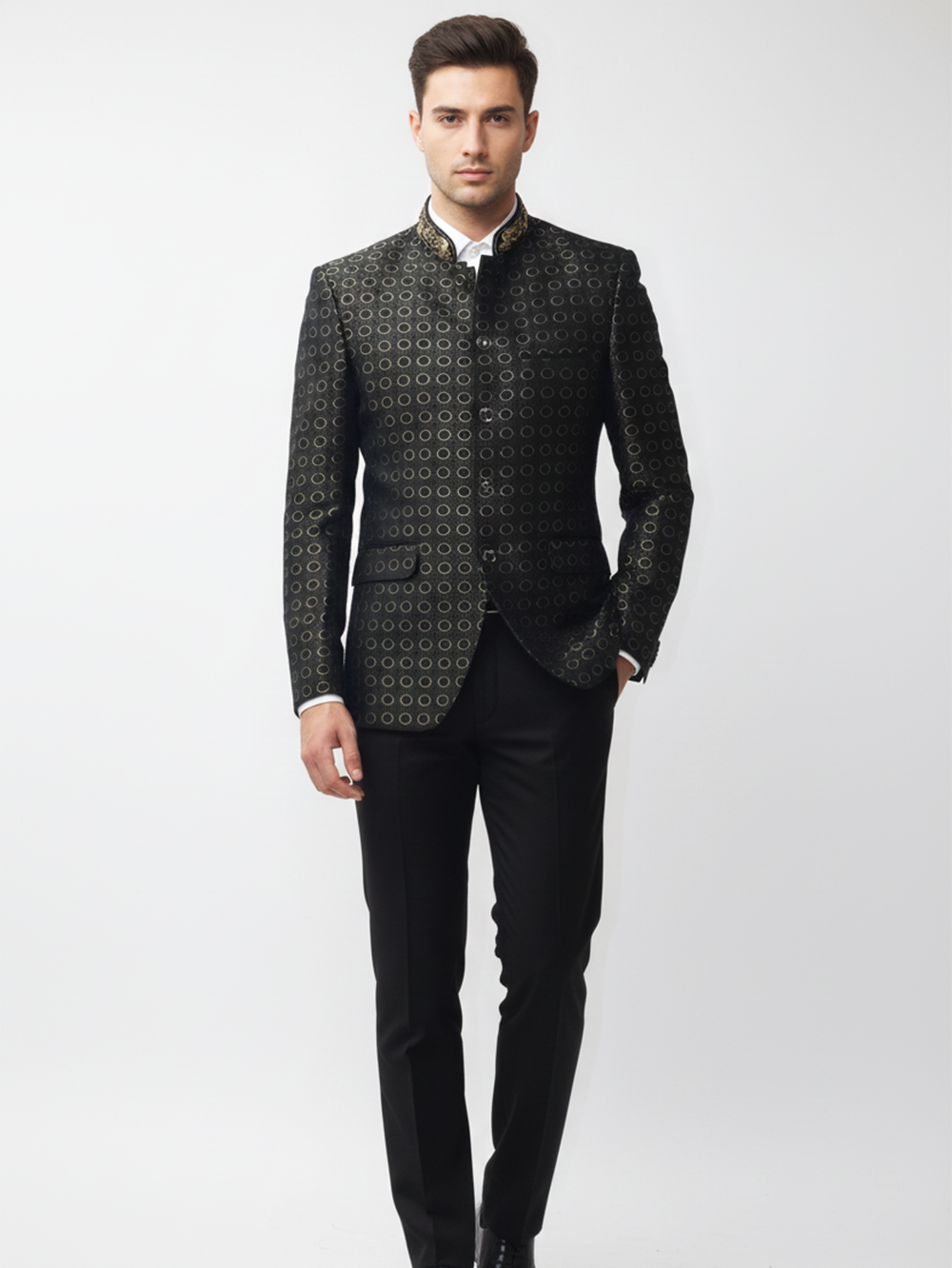 Wij zijn een fabrikant, groothandelaar, ontwerper, exporteur en detailhandelaar van hoogwaardige heren designer kleding. Onze expertise ligt in het creëren van premium, op maat gemaakte kledingstukken die vakmanschap, stijl en precisie combineren. Wij zijn gespecialiseerd in designer herenkleding voor bruiloften, verlovingen, vieringen, feesten en andere speciale gelegenheden. Elk stuk is doordacht ontworpen om te voldoen aan de hoogste normen van kwaliteit en elegantie. Wat ons onderscheidt, is onze volledig geïntegreerde, end-to-end productiefaciliteit. Onder één dak beheren we de productie van stoffen, borduurwerk, naaien, afwerking en verpakking. Deze zeldzame opzet stelt ons in staat om volledige controle te behouden over kwaliteit, consistentie en tijdlijnen. Ondanks onze grootschalige capaciteiten bieden we uitzonderlijke flexibiliteit—klanten kunnen bestellingen plaatsen variërend van een enkel stuk tot bulkhoeveelheden, afgestemd op hun specifieke wensen. Stoffencatalogi en monsters zijn op aanvraag beschikbaar. Naast kledingproductie bieden we merkcreatiediensten en inkoopoplossingen voor ontwerpers, boetieks, detailhandelaren en instellingen. Al met al zijn wij een one-stop oplossing voor premium herenkleding, waarbij we op elk niveau maatwerk, betrouwbaarheid en uitmuntendheid leveren.
