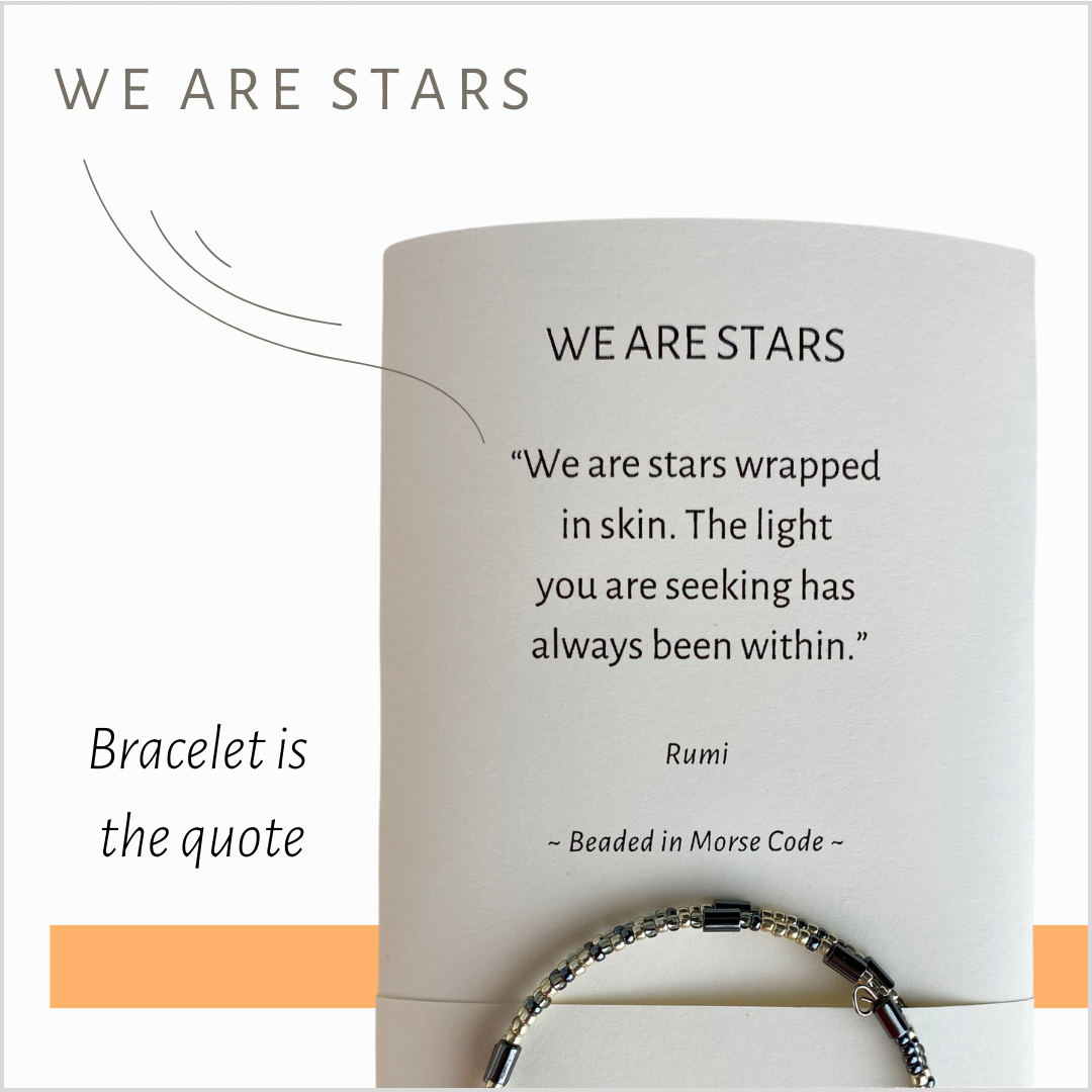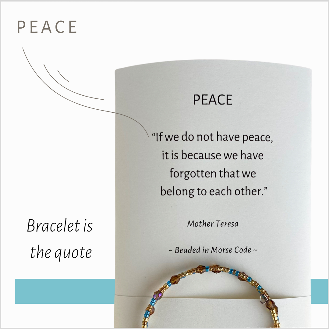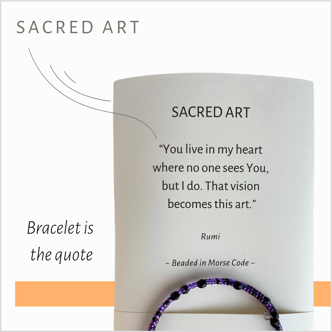 SPIRITUELE CITATEN DIE JE KUNT DRAGEN - MAAR WAAROM MORSECODE? De eerste instant message ter wereld werd in mei 1844 per telegraaf verzonden: „Wat heeft God gedaan?” Opeens was de aarde kleiner en de mensheid meer verbonden. De boodschap was spiritueel, maar heeft het technologische tijdperk aangewakkerd. De inspiratie voor bead in Morse code kwam in 2006 naar me toe. Destijds had bijna niemand het over morsecode, maar ik voel me al lang sterk verbonden met de betekenisvolle geschiedenis ervan. Mijn naam is Sarah, en dit is mijn aanbod. Dit is waarom ik de armbanden na al die jaren nog steeds maak: Wear a Touch of Spirit brengt de materiële schoonheid van kralen en de spirituele schoonheid van de wereldgeloofsteksten, heiligen en spirituele dichters samen. Mensen vertellen me dat ze zich erg ontroerd voelen als ze op hun pols neerkijken op hun heilige vers. Velen dragen hun armbanden elke dag. Nu we allemaal zoveel ondersteuning nodig hebben bij de hoofdstukken en uitdagingen van het leven, ben ik blij dat deze armbanden in de loop van de tijd zoveel meer zielen verheffen.