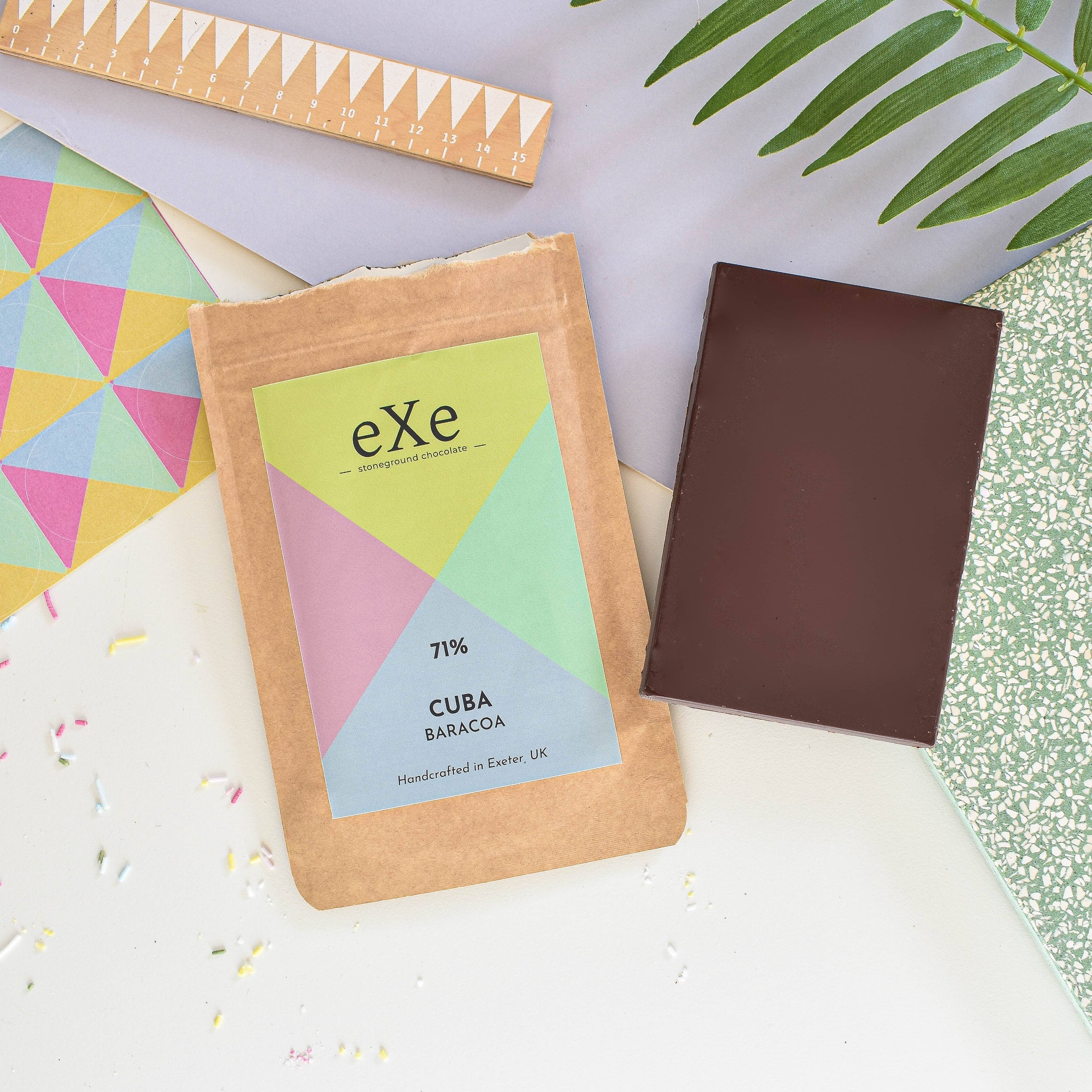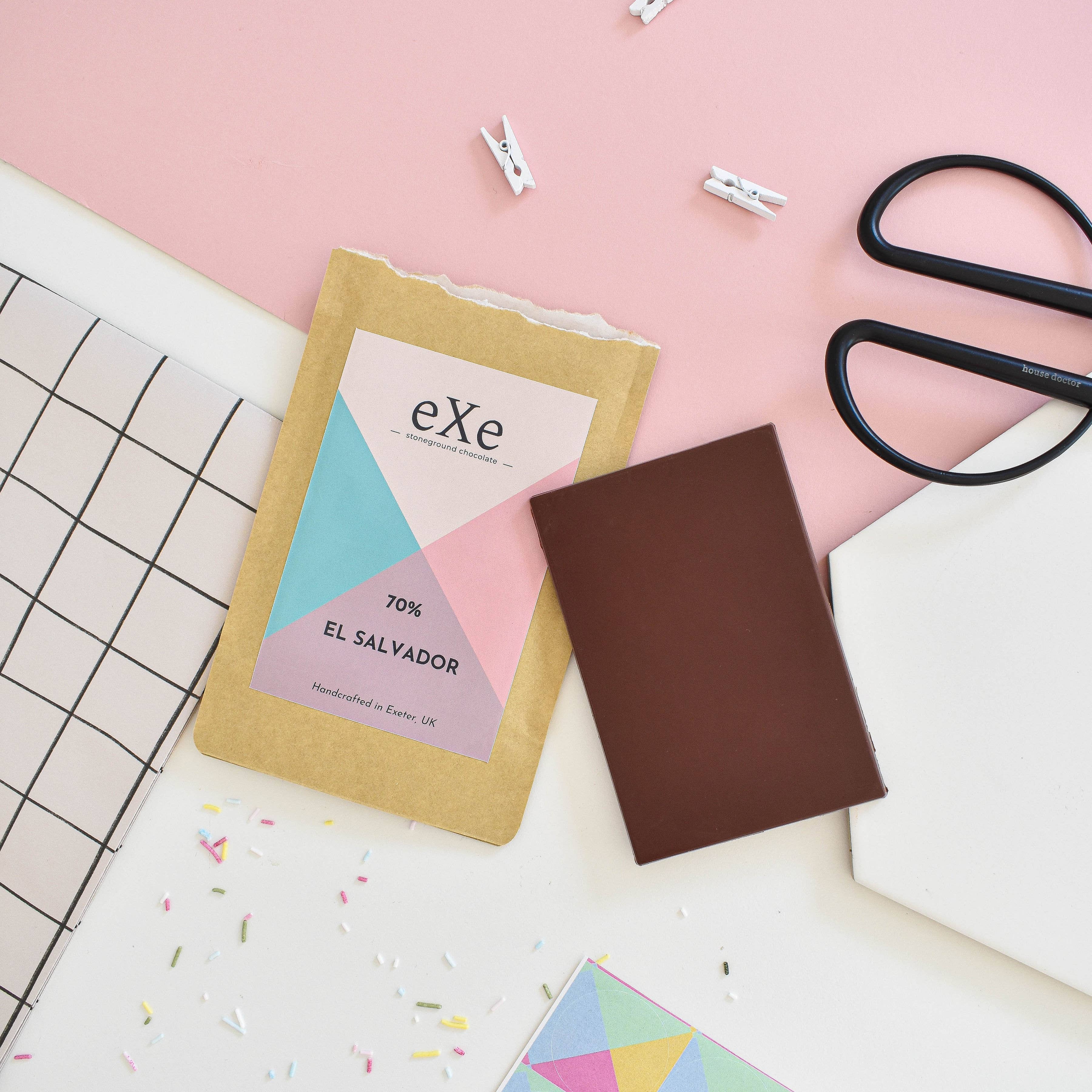 Handgemaakt in kleine batches in een kleine chocoladefabriek in Exeter. Exe Chocolate werkt samen met de lokale en wereldwijde gemeenschap om handgemaakte, duurzaam geproduceerde chocolade te creëren met een uitstekende smaak die trouw is aan de boon.