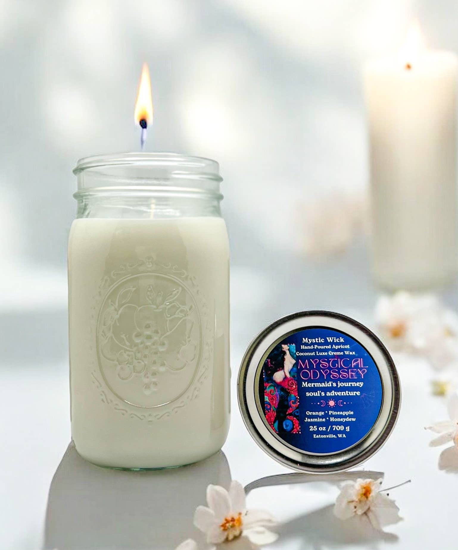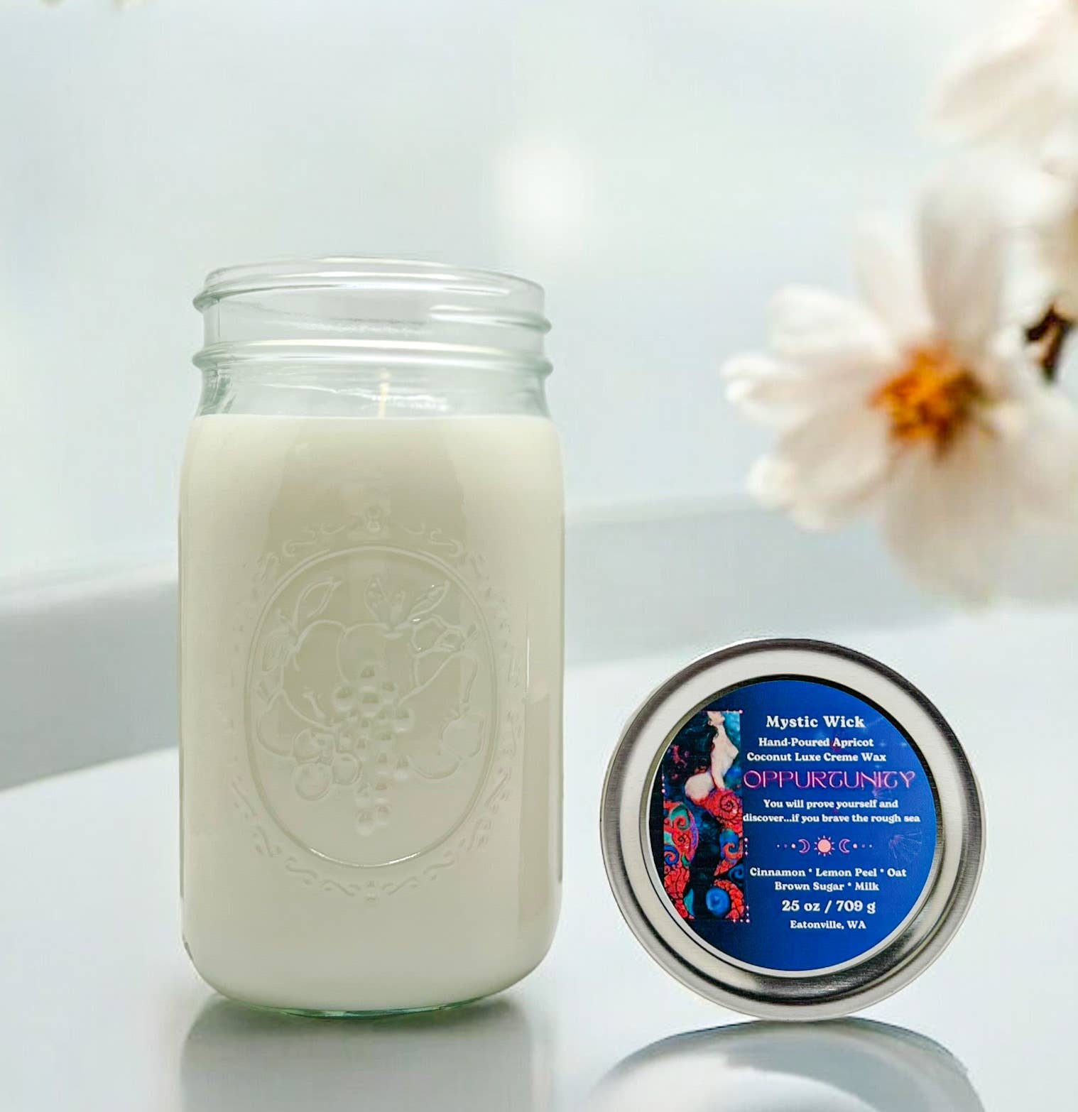 Mystic Wick Candles, opgericht in 2023, is ontstaan uit een passie voor het creëren van hoogwaardige, milieuvriendelijke kaarsen met prachtige geuren. Wat begon als een klein bedrijf is uitgegroeid tot een geliefd merk dat klanten vertrouwen en waarderen. Een zeemeermin in hart en nieren en Vissen van geboorte, dit is een reis vol liefde, en ik ben zo blij als een kind om te zeggen dat elke oceaan die ik heb ontmoet een heerlijke vriend is geworden. We steunen de opruiming van de oceanen door een deel van de omzet terug te doneren aan de zee! Geniet van de warmte en sfeer van onze premium kaarsen, gemaakt met de beste ingrediënten en een streven naar duurzaamheid. Onze mix van natuurlijke sojawas en luxe crèmewas van abrikoos/kokosnoot, hoogwaardige geuroliën en katoenen wieken zorgen voor een schone en milieuvriendelijke verbranding. We zijn trots op onze kleine hoeveelheden, met de hand gegoten kaarsen, waarbij we elke geur zorgvuldig selecteren en elke kaars met liefde verpakken. Van begin tot eind letten we op elk detail om u een ongeëvenaarde kaarservaring te bieden die niet alleen uw zintuigen prikkelt, maar ook aansluit bij uw waarden Laat de betovering van onze op zeemeerminnen geïnspireerde kaarsen een vleugje zee naar je huis of camper brengen.