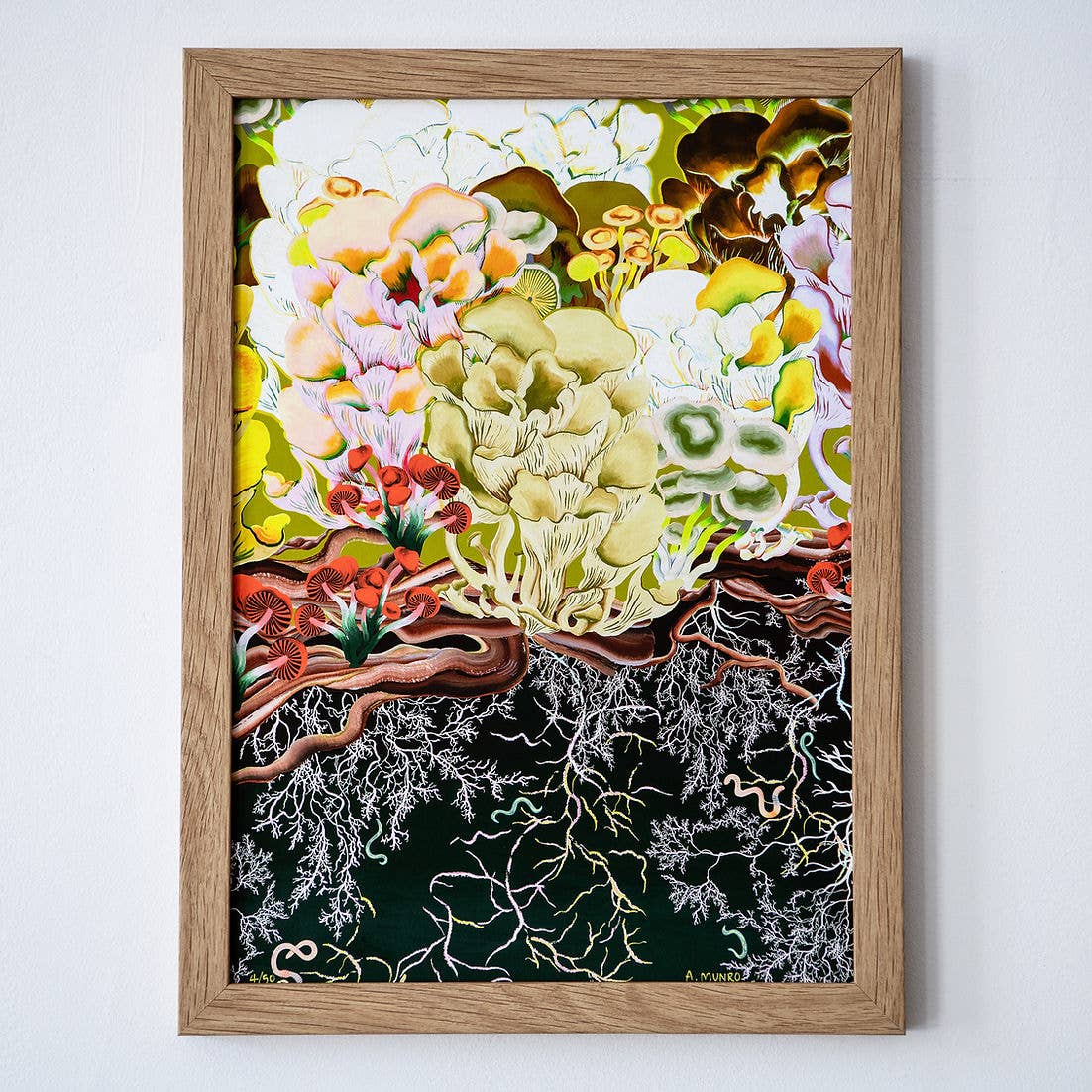 Ailsa Munro is een kunstenaar en oppervlakteontwerper gevestigd in Londen, VK. Met bijna microscopische nauwkeurigheid concentreert Munro's werk zich op de vegetatieve wereld, het onderwerp klimaatverandering en de verwildering van onze planeet — een onderling verbonden netwerk van levende organismen die vaak stilstaan, maar bruisen van energie en leven. Munro's nieuwste kunstdrukcollectie in beperkte oplage verkent hyperintelligente netwerken die onder het oppervlak opereren, waarbij nauwkeurig wordt gekeken naar de rol die mycelium en bodemgezondheid spelen in het voortbestaan van de aarde. Gebaseerd op observationele studies en gedigitaliseerd naar ingebeelde omgevingen.