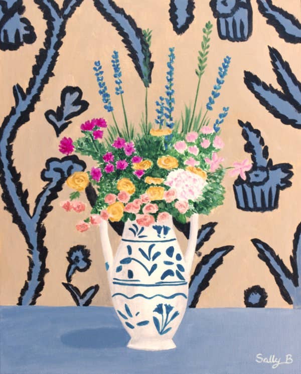 Behind Wanderingsally is een autodidactische kunstenaar die in Zuid-Frankrijk woont. In haar schilderijen leggen Sally's kunstwerken haar wereld van verbeelding vast die romantisch en nostalgie is met mooie kleurenpaletten en een vleugje chinoiserie. Ze schildert graag bloemen, vrouwen en dieren. Sommige van haar originele schilderijen bevinden zich nu in privécollecties in Noord-Amerika, Europa, Azië en Australië.