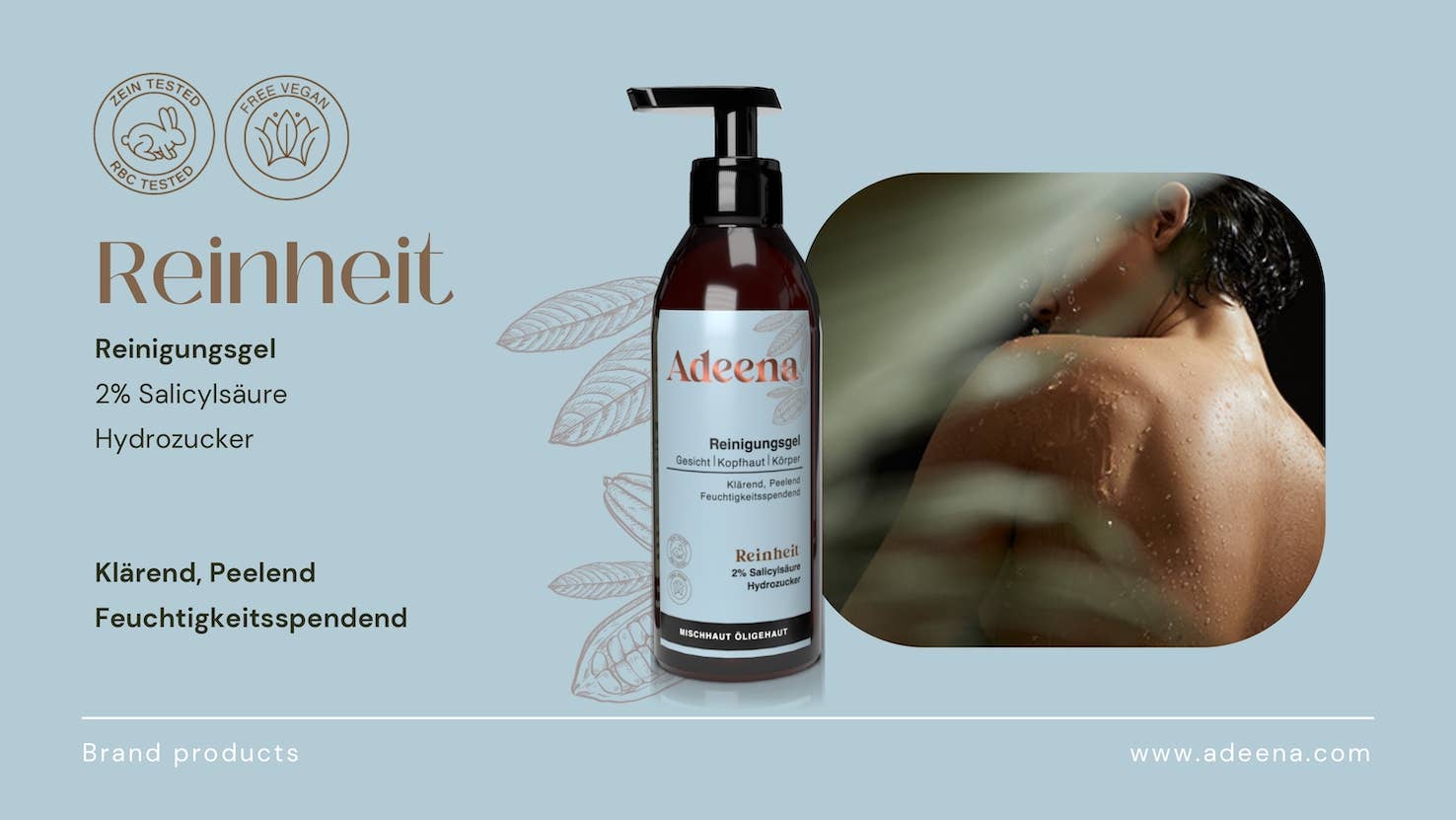 Adeena gezicht, hoofdhuid en lichaam HYDRATEERT, KALMEERT, BESCHERMT EN REINIGT De unieke combinatie van een nieuwe generatie reinigingsgel met beschermende factoren en biologisch actieve moleculen leidt tot de meest positieve effecten na het reinigen. Het microschuim reinigt tegelijkertijd onzuiverheden en transporteert actieve ingrediënten die de processen en veerkracht van de huid normaliseren, waardoor een superieure zintuiglijke ervaring wordt geboden. Ontwikkeld met als doel de huidbarrière te behouden. Natuurlijke stoffen, verzachtende werkstoffen en moderne reinigers in optimale sterkte zorgen voor een efficiënte reiniging van gezicht, lichaam en hoofdhuid zonder afbreuk te doen aan comfort. Adeena reinigingsgel bereikt verschillende positieve effecten op de huid tijdens het reinigen. Afhankelijk van het type product kunnen Adeena-reinigers: - de huid hydrateren - helpen de barrière te behouden - help de huid te normaliseren - verwijder dode huidcellen - verwijder de afzettingen uit de poriën - microcirculatie en antioxiderende effecten - kalmeert de huid - een probiotisch effect hebben De Adeena-fles is een 100% authentiek product vervaardigd volgens de specificaties van ons ontwikkelingsteam en definieert de vorm, kleur, textuur en zelfs de hoeveelheid lichtreflectie. We streefden naar een onderscheidend, anders, unisex en minimalistisch ontwerp dat de functionele sterkte van het product zou versterken