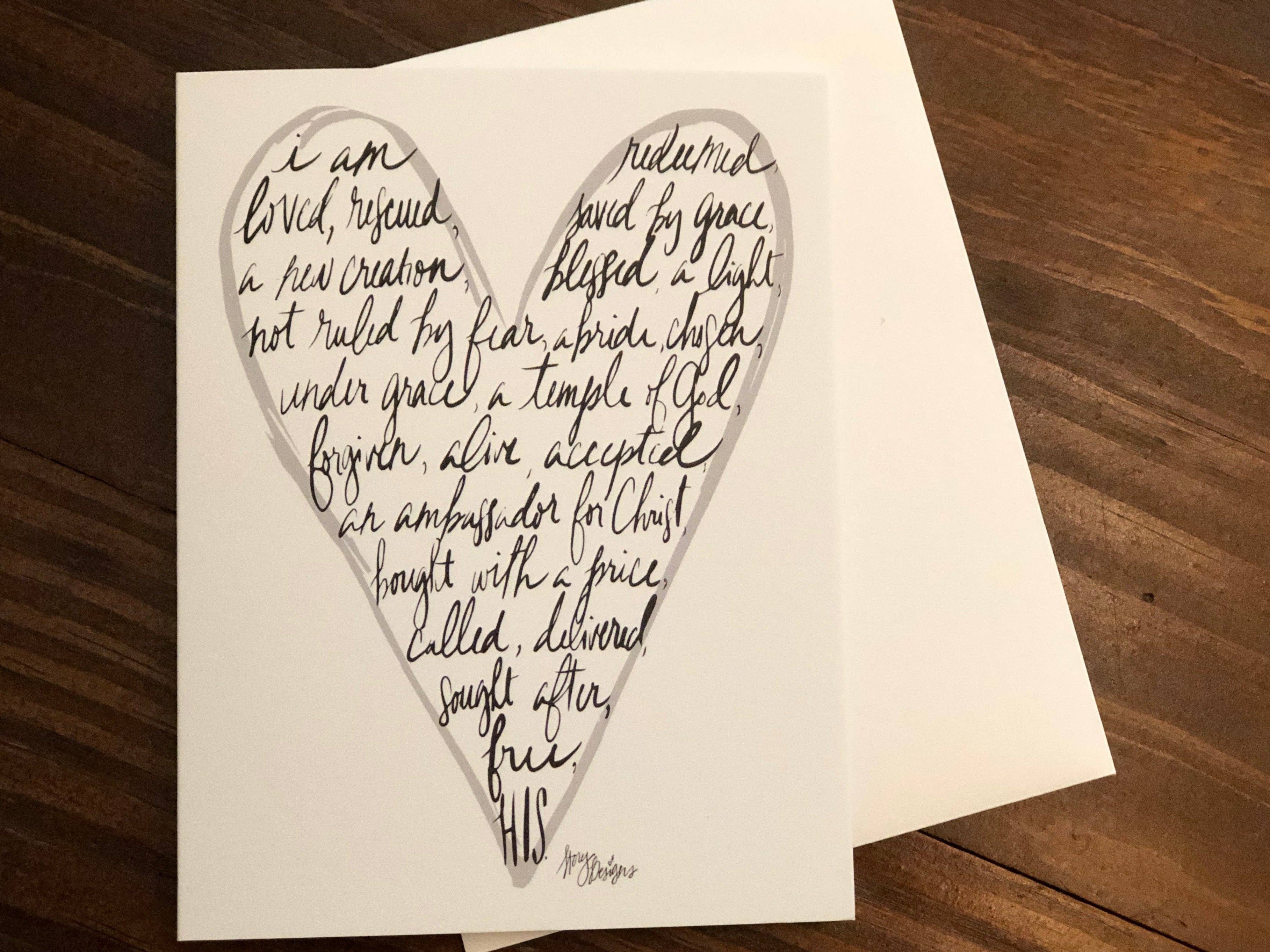 Story Designs is ontstaan uit een persoonlijke wens om kunstwerken te maken voor mijn eigen huis, gericht op de waarheid die werd gevonden toen ik de Schrift overspoelde. Mijn naam is Heather Gilion, en mijn man en ik hebben twee wilde en geweldige jongens en we wonen in Ozark, Missouri. Ik ben in 2013 begonnen met het schilderen van Schriftkunst voor anderen. Ik heb uit de eerste hand gezien wat het effect is van het feit dat de Schrift in mijn huis hangt, omdat het me verankert in deze chaotische en soms op zijn kop staande wereld. Ik vind het zo leuk om Zijn Woord te schilderen en ik ben op een missie om mijn steentje bij te dragen aan het verspreiden van Zijn waarheid, of dat nu is door waarheidskunst te schilderen voor thuis en op kantoor, in kerken of in uw plaatselijke ontmoetingsplaatsen. Ik kijk toe hoe Hij me deze kunstbediening blijft schenken en uitrusten. Het is echt een vreugde en eer om het Woord in kunstvorm tot leven te brengen voor anderen. Ik kan nu printversies aanbieden van de handgeschilderde stukken die ik heb gemaakt.