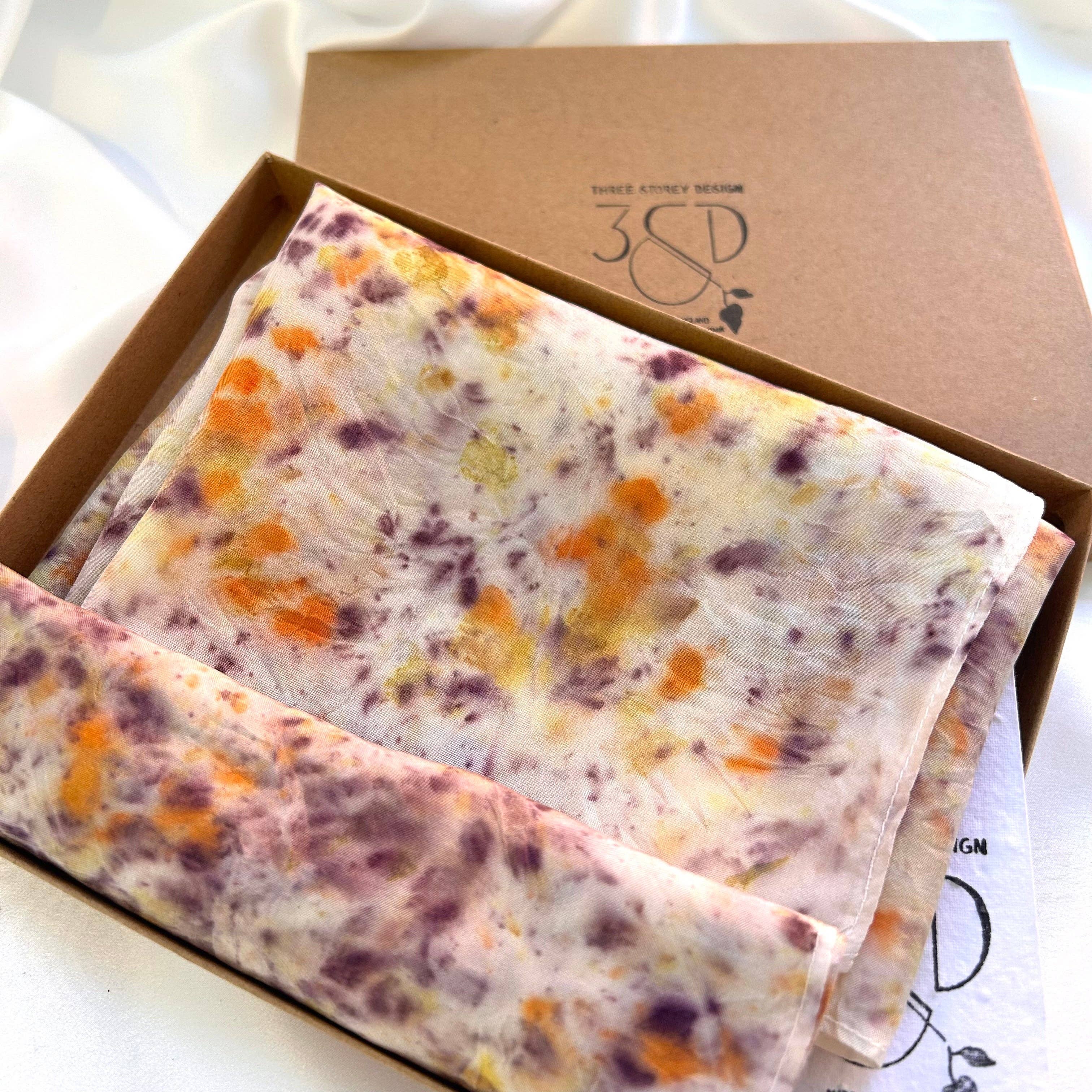 Three Storey Design is gevestigd in Greater Manchester en maakt ambachtelijke zijden producten en organiseert workshops over natuurlijk verven. We geven prioriteit aan duurzaamheid in elke stap van ons proces. Onze materialen worden zorgvuldig gekozen en onze verpakkingen zijn ontworpen om volledig recyclebaar te zijn. Geniet van het extra plezier van onze plantbare swingtickets, die uitgroeien tot prachtige bloemen.