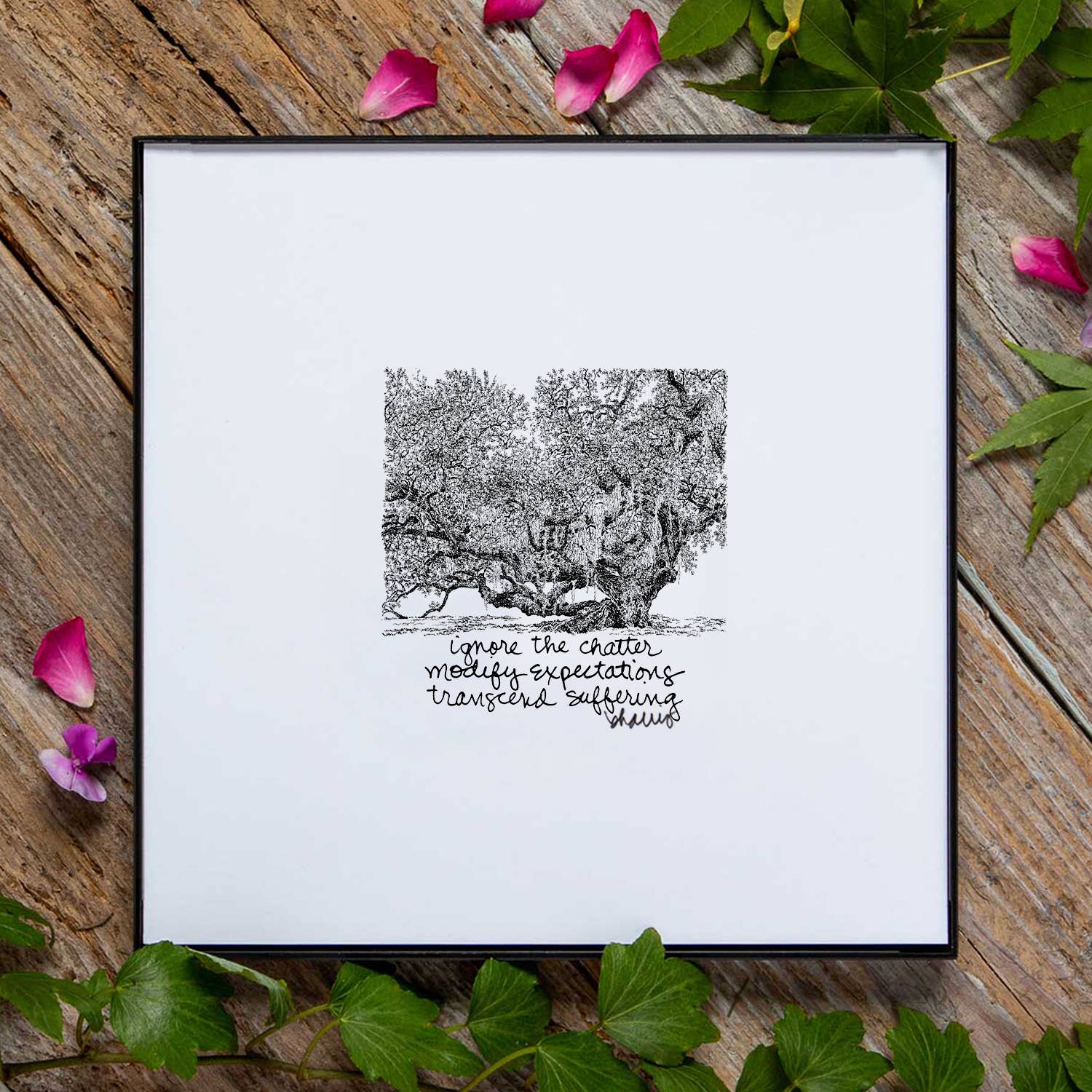 OVER DE ARTIEST Na twee decennia door de backoffices van corporate America te hebben gedreven als auditor, bedrijfsanalist, it-consultant, enz., Kwam ik op een dag dat ik besloot de volledige verantwoordelijkheid te nemen voor waar ik mezelf in mijn leven bevond. Ik durfde mezelf af te vragen: „Wat wil ik met mijn leven doen? Waar hou ik echt en echt van?” en misschien wel het belangrijkste van alles: „Waar ben ik eigenlijk, echt en echt GOED in?” In de komende dagen, weken, maanden leidde God/Life/The Universe, hoe je het ook wilt noemen, me naar een dag dat ik wakker werd en me herinnerde: „Weet je wat ik als kind graag deed? Tekenen. Geen 'design killer Power Point-dia's. ' Tekenen. Pas mijn creativiteit niet toe op complexe Excel-spreadsheets. ' Tekenen.” Dus dat deed ik ook. OVER DE KUNST Het leven is moeilijk. Het is gewoon... En het is per ontwerp: Lijden, zoals de mystici van alle religies hebben opgemerkt, is een essentieel onderdeel van de menselijke ervaring.