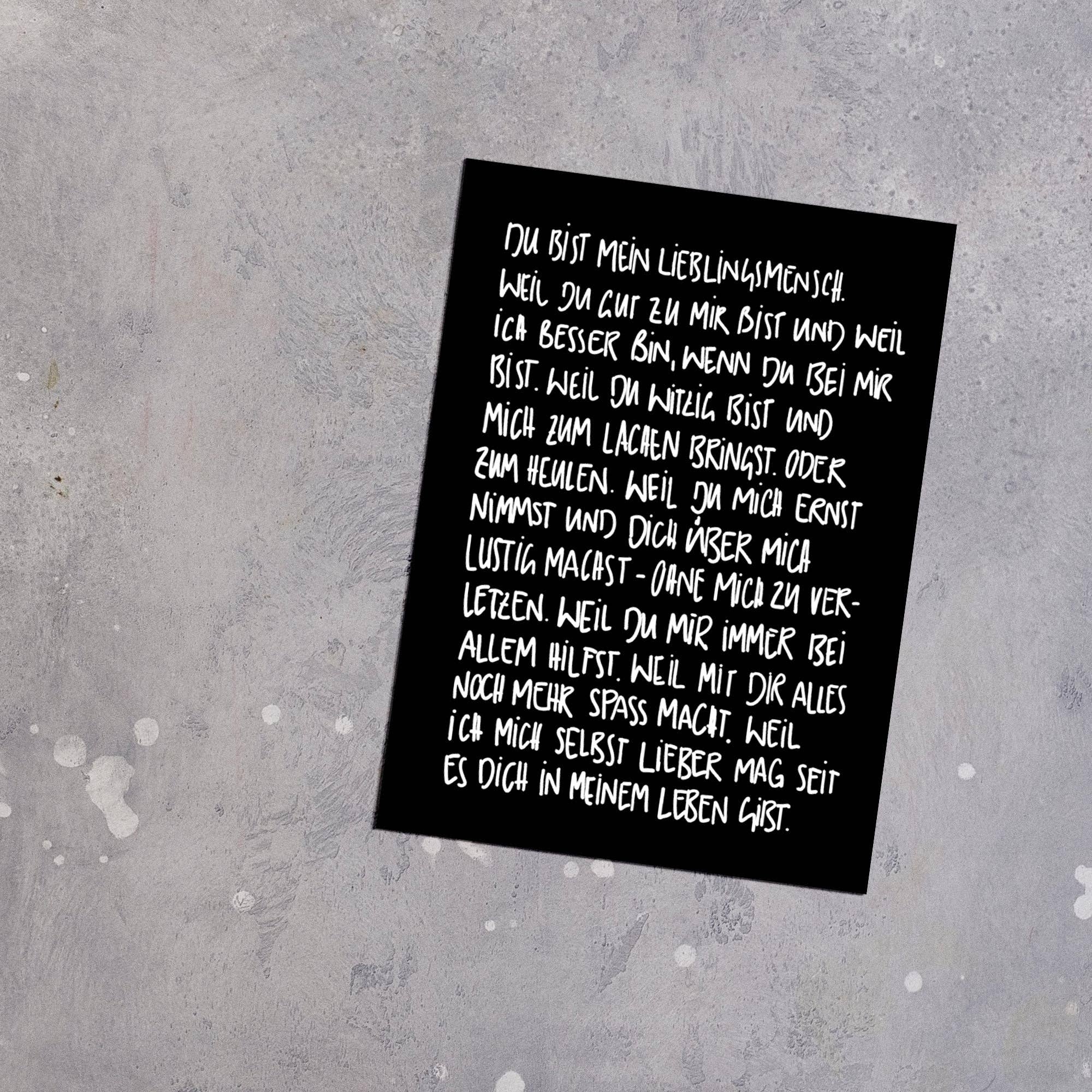 LOVE IS THE NEW BLACK Word verliefd op papier Fijnste ansichtkaarten en prints, notitieboeken, posters en accessoires. Met de hoogste eisen aan papier en typografie. Het label is een project van het Stuttgarter grafisch bureau BUERO MATTSCHWARZ en staat voor minimalistisch, gereduceerd design. De motieven leveren duidelijke boodschappen, gelegenheidkaarten zonder kitsch en statementkaarten zonder slechte grappen. Zo goed dat je ze misschien helemaal niet wilt versturen, maar inlijsten en aan je eigen muur wilt hangen. "We houden van zwart. En wit. We houden ervan om dank je, hallo en ik hou van je te zeggen. We zeggen niet graag vaarwel. Maar als we dat doen, willen we tenminste dat het er goed uitziet." Alle producten worden regionaal en CO2-neutraal geproduceerd.