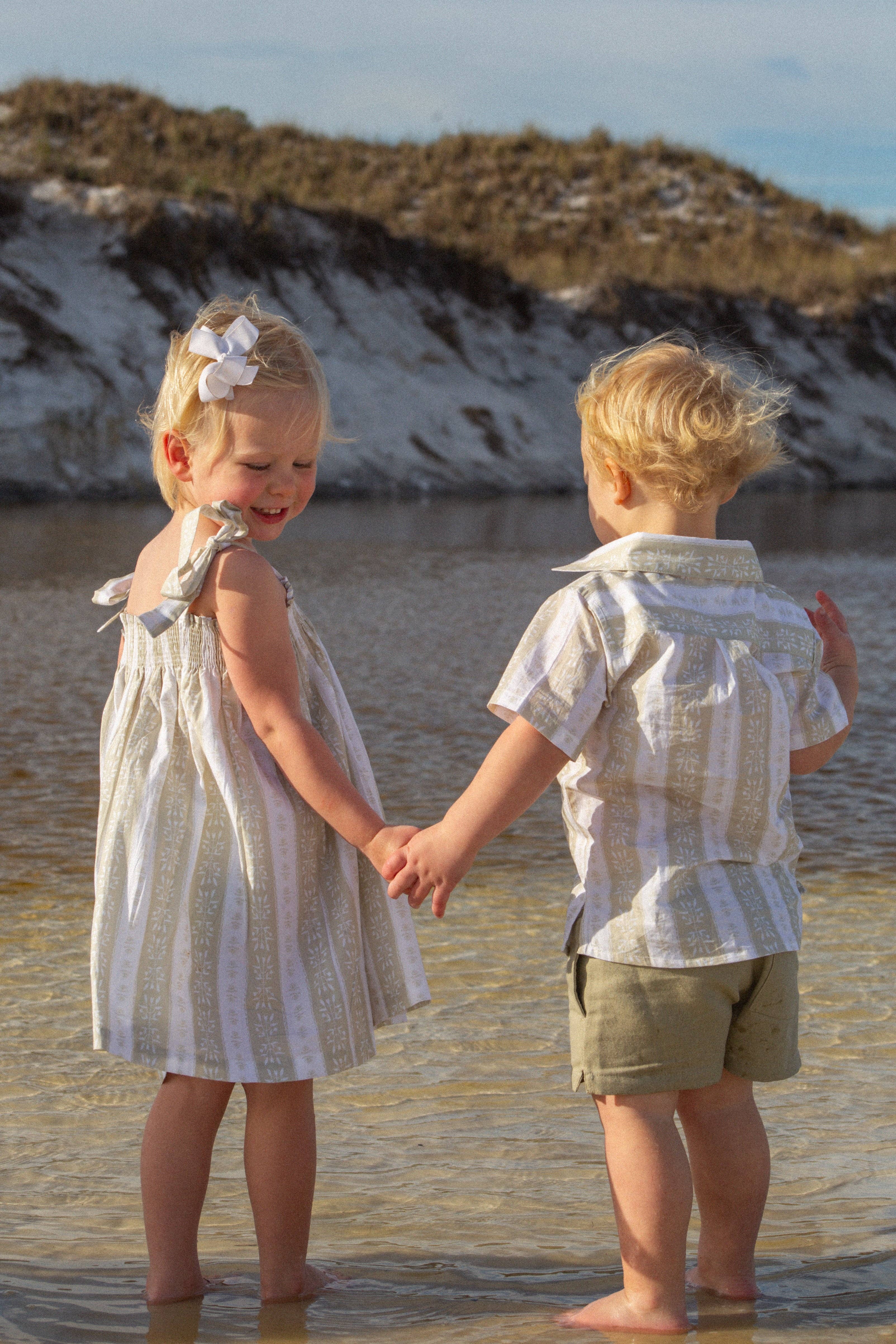 Sonny James is je ingebouwde beste vriend. Een knuffelaar. Een knokkelkop. Een genot. Een probleemmaker. Ze is zonneschijn. Een klein straaltje liefde en licht! Haar stijl is een beetje schattig en een beetje mooi. Het is een beetje vrouwelijk en heel leuk. Het is helemaal kleurrijk en altijd comfortabel. Het is een beetje van dit en een beetje van dat, maar het komt allemaal samen met heel veel liefde. De Sonny-stijl omarmt het leven aan het strand van eigenaresse Paige Hunter. De kleding is geïnspireerd op de kustplaats waar zij en haar familie in Florida wonen en bevat eenvoudige, lichte kledingstukken die je overal mee naartoe kunt nemen, zodat je gemakkelijk met je kleintjes kunt samenleven. Al onze prints zijn ontworpen in Rosemary Beach, FL en vertegenwoordigen een stukje van ons huis en ons hart.