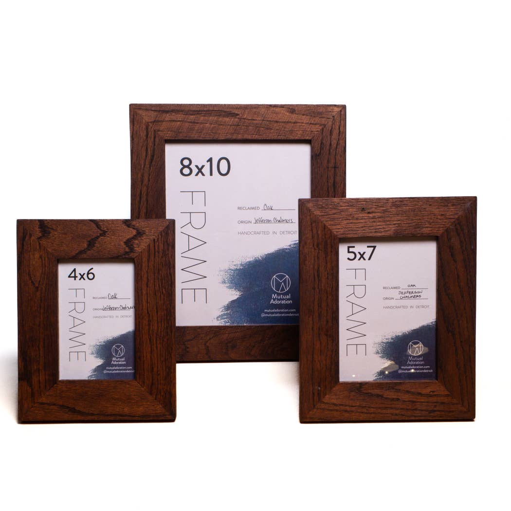Mutual Adoration, opgericht in 2012 door Clare Fox en Wayne Maki, is een veelzijdig onafhankelijk bedrijf dat gespecialiseerd is in het produceren, verkopen en onderwijzen van hedendaagse ambacht. Alle fotolijsten en huishoudelijke artikelen van Mutual Adoration worden met de hand gebouwd, in onze door vrouwen gerunde studio in Detroit. Het hout dat we gebruiken is meestal eiken-, grenen- of esdoornvloeren. Onze houtinventaris varieert omdat het allemaal op verantwoorde wijze wordt teruggewonnen uit renovatie- en sloopprojecten die in de stad plaatsvinden. De andere gebruikte materialen, waaronder glas, ezelruggen, hardware en verpakkingen, zijn van Amerikaanse makelij en zo milieuvriendelijk en lokaal mogelijk geproduceerd. Mutual Adoration gelooft in het belang van ambacht, gemeenschap en dingen met de hand maken. Door ons harde werk, onze toewijding aan kwaliteit en door onze kennis en vaardigheden royaal te delen, streven we ernaar om een positieve kracht te zijn voor onze gemeenschap van klanten, studenten, werknemers en medewerkers.