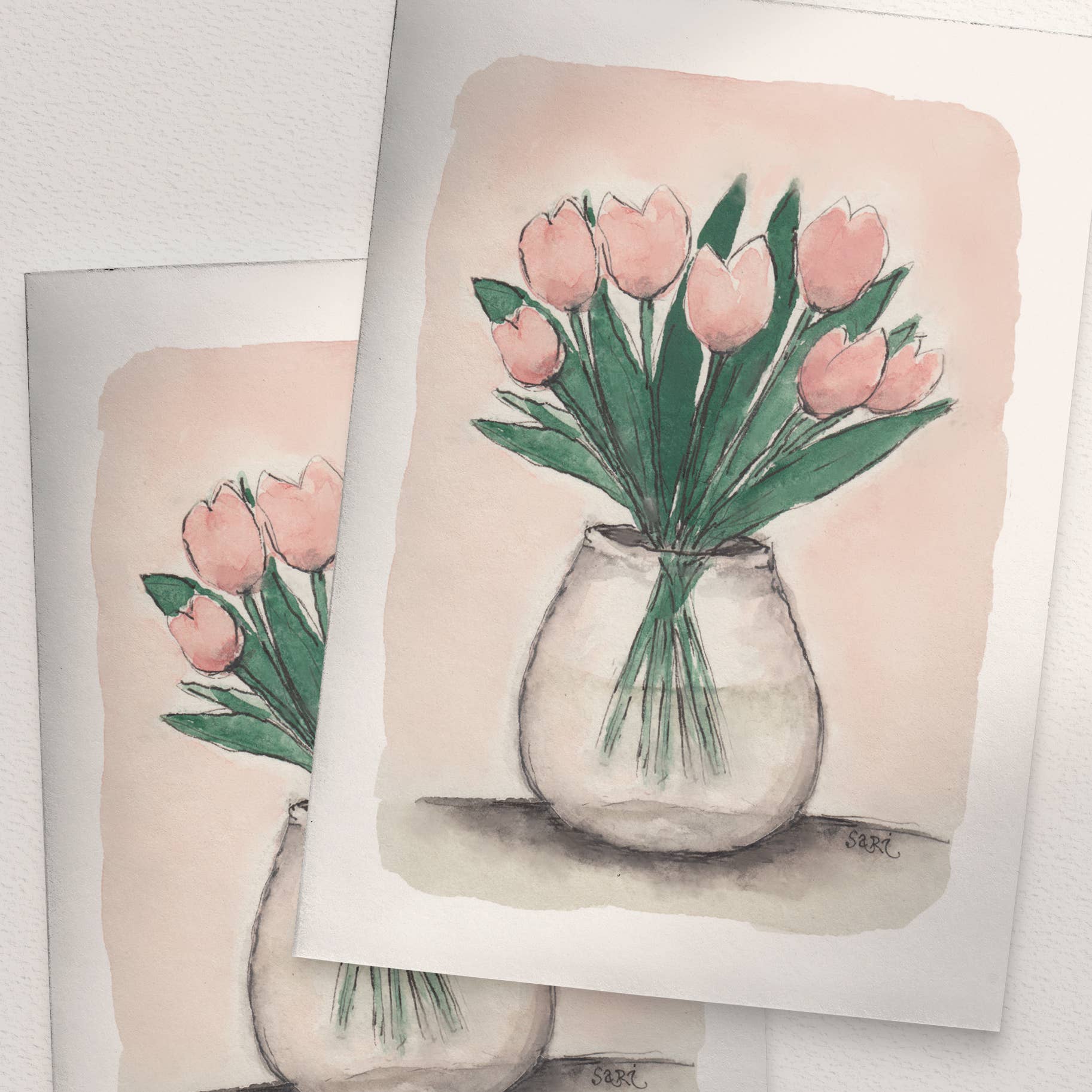 Sari is een Finse kunstenaar, studeerde kunst aan de plaatselijke kunstacademie in Pori en studeerde af in 1995. Daarna verhuisde ze naar de poolcirkel en richtte haar bedrijf daar in Rovaniemi in 1998 op, maar tegenwoordig woont ze in haar geboorteplaats Ulvila. Sinds de start van haar bedrijf meer dan 20 jaar geleden heeft ze vele honderden, zo niet duizenden aquarelschilderijen geschilderd, waarmee ze mensen geluk en vreugde wil brengen. Er zijn veel verschillende soorten ontwerpen en kaartformaten om uit te kiezen, voor allerlei momenten in het leven, zoals de geboorte van een kind, bruiloft en afstuderen. De hele tijd duikt ze nieuwe ideeën in haar hoofd om een beetje kunst in het dagelijks leven te brengen.