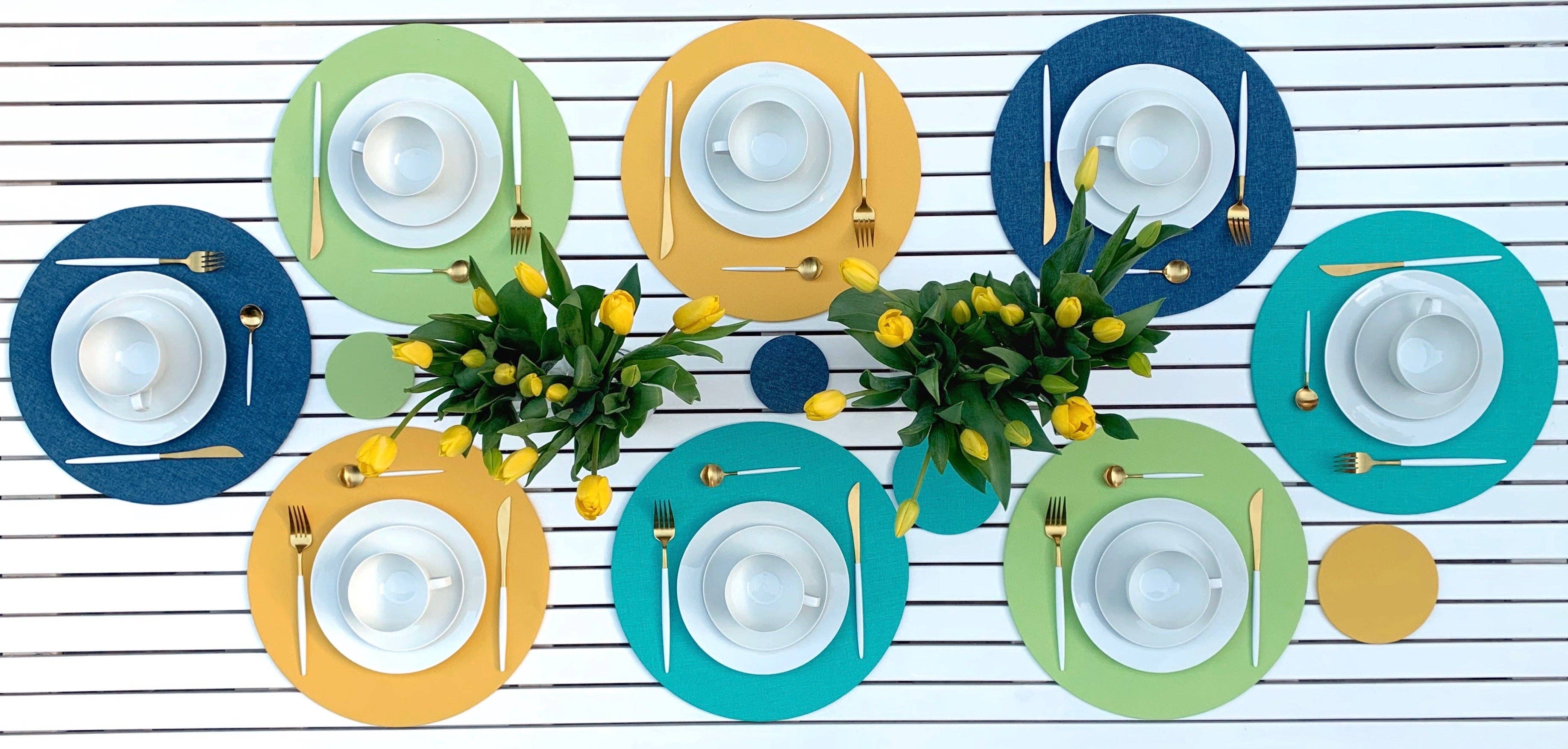 tablets zijn placemats. Denk aan een platte ronde basis en verwisselbare stoffen hoezen. Sabine Camargos is de oprichter en CEO van tabledots, een startup opgericht in Barcelona in 2019. Sabine is een Duits-Braziliaanse moeder van 2 meisjes, inmiddels gevestigd in München: een absolute liefhebber van foodie, design en deco. Na meer dan 20 jaar advies, besloot ze tabledots op te richten om dit geweldige product bij jou thuis en op tafel te brengen. „Onze wereld wordt steeds virtueler, maar lekker eten en gedeelde maaltijden blijven de kern van menselijke relaties. Wij vinden dat deze alledaagse momenten bewust ontworpen en gevierd moeten worden. Onze missie is om van elke maaltijd een heerlijk en memorabel moment te maken.” Sabine heeft haar productiepartners in Portugal zeer zorgvuldig geselecteerd om ervoor te zorgen dat de werkomstandigheden voor de naaisters echt eerlijk en plezierig zijn. „De textielindustrie wordt gedomineerd door vrouwelijke arbeidskrachten, we wilden er zeker van zijn dat ze zich op een goede plek zouden bevinden”. „Onze stoffen zijn afkomstig van kleine familiebedrijven in Spanje, we hebben alle fabrikanten persoonlijk bezocht en de mooiste voor je uitgezocht!” Alle hoezen zijn gemaakt van verschillende stoffen en bedekken de schijf perfect als hoeslakens. Wasbaar in de machine Eenvoudig te verwisselen. Met liefde gemaakt in Portugal. tafelpunten. een sfeer voor elke maaltijd.