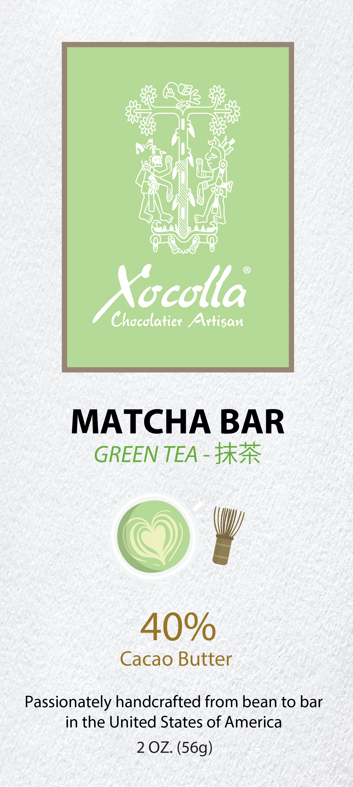 XOCOLLA (uitgesproken: ZO-CO-LA) is een ambachtelijke chocolademaker gevestigd uit Sugar Land, Texas (onderdeel van het grotere Houston Metropolitan Area). De naam XOCOLLA is afgeleid van het woord „XOCOLATL”, de Maya-naam voor chocolade ter ere van de AZTEC/Maya-mensen die de eerste beschaving zijn die de cacaoboon ontdekt om drankjes te maken rond 1900 voor Christus. Xocolla handgemaakte chocolade van wereldklasse van één oorsprong gemaakt in kleine batches van boon tot reep. We hebben hard gewerkt met kleine boeren en gerenommeerde makelaars om onze consumenten de beste ingrediënten te bieden. We hebben ook samen met chef-koks en sommeliers gewerkt om onze chocolaatjes te combineren met ambachtelijk eten, wijnen, bier, likeuren, koffie, thee, kazen, fruit en anderen.