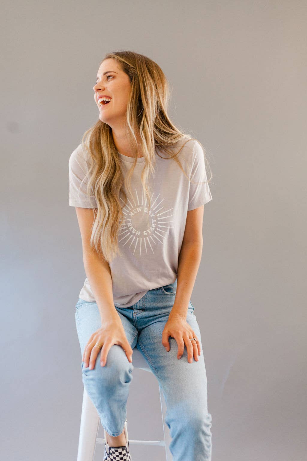 Het begon allemaal toen... Al mijn vrienden en hun vrienden kregen baby's. Omdat ik van nature een doe-het-zelver was, begon ik op maat ontworpen ijzeren onesies te maken voor iedereen en elke babyshower waar ik naar toe ging en mensen vonden ze leuk... VEEL. Dus ik las wat artikelen en keek enkele YouTube-video's en liet mijn man een pers voor me bouwen om shirts in de garage te zeefdrukken. Toen ontdekte ik dat ik zwanger was van een kleine jongen en terwijl ik weigerde de „Daddy is my hero” onesie te kopen, ontwierp ik mijn eigen onesies en T-shirts en verkocht ze op Etsy. Snel vooruit spoelen naar vandaag... Hoewel ik nu een moeder van twee ben, heb ik zoveel liefde gevonden in niet alleen ontwerpen voor baby's en kinderen, en T-shirts die specifiek op moeders zijn gericht, maar in plaats daarvan vrouwen collectief; iets waar iedereen zich ook in kan verhouden, iets waar iedereen in kan geloven, en iets dat niet alleen een positieve boodschap naar de persoon stuurt het dragen als ze een glimp opvangen in de spiegel, maar dat heeft ook invloed op de mensen om ons heen. Omdat ik een t-shirt en een spijkerbroek ben, is comfort en stijl belangrijk voor mij, dus niet alleen hebben de T-shirts inspirerende berichten, ze passen goed bij elke sfeer die er die dag gaande is; of dat nu ontspannen is met denim, zweterig met yogabroeken, of zin hebben met een rok.