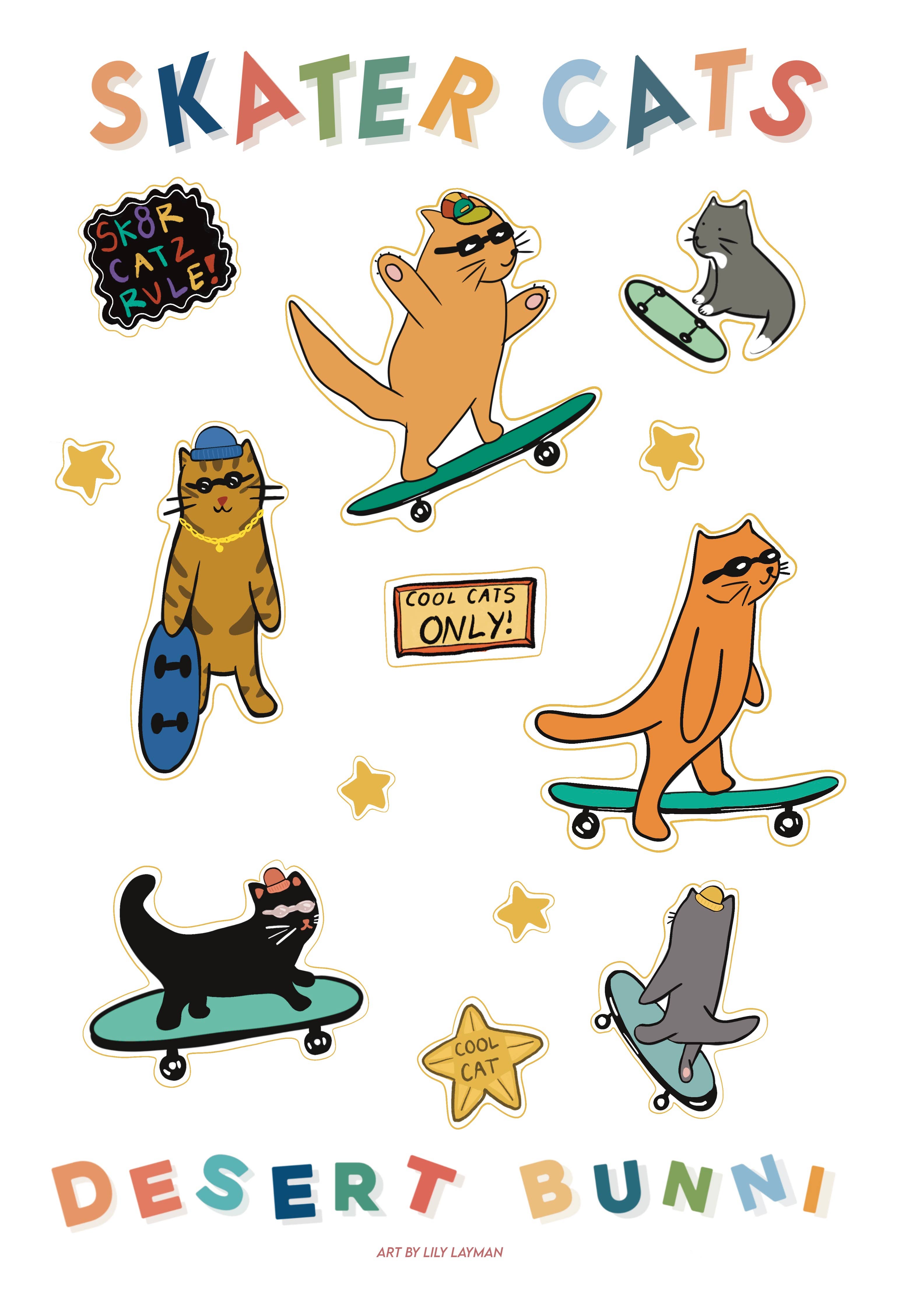 Maak kennis met Lily Layman, de maker achter Desert Bunni. Lily, gevestigd in San Francisco, Californië, is een queer artiest die kunst maakt met de bedoeling je innerlijke kind te laten glimlachen. Ze is een multimediakunstenaar die aquarel, acryl en digitale illustratie combineert, evenals naaldvilten en haken. Haar werk is dwaas, speels en altijd kleurrijk. Haar kunstwerken zijn geïnspireerd op de natuur, haar twee katten, Tumi en Maisy, en kinderboeken. Als voormalig basisschoolleraar en huidige afgestudeerde student die een graad in schoolbegeleiding volgt, wordt Lily's kunstwerk sterk beïnvloed door de magische, nieuwsgierige en creatieve lens van kinderen. Ze streeft ernaar kunst te maken waardoor mensen zich gelukkig, geliefd en goedlachs voelen.
