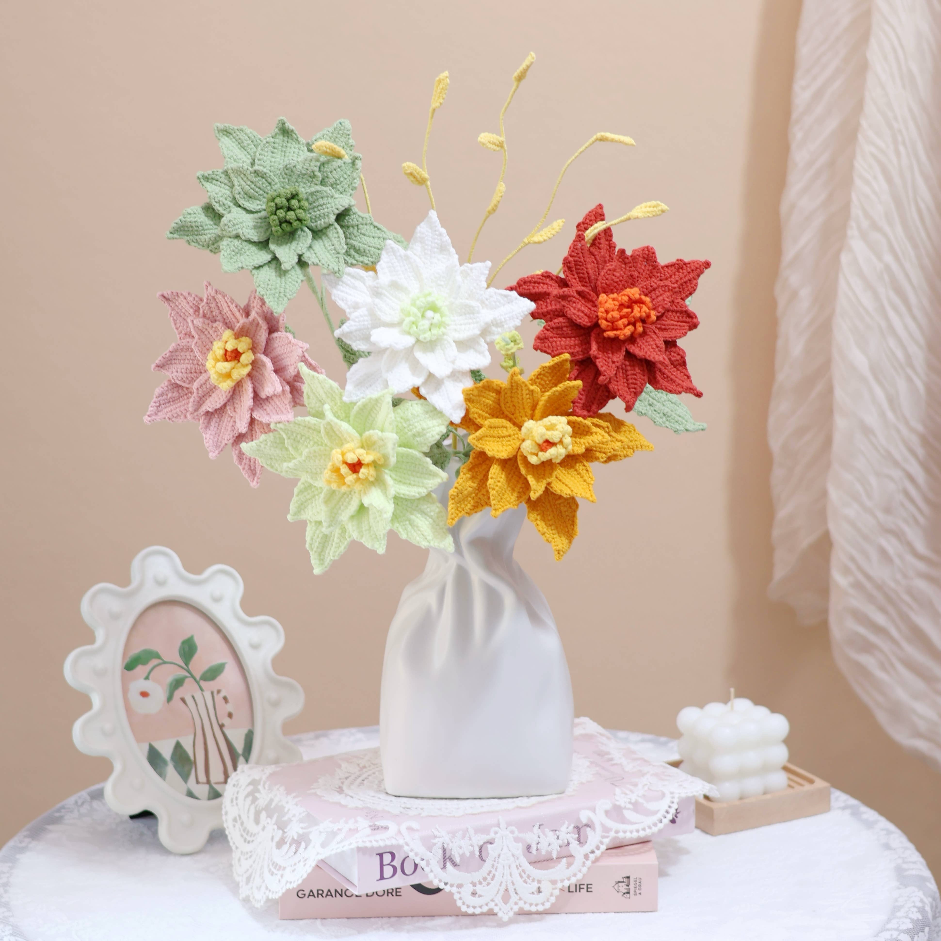 📢 Vakantiebericht We zijn op vakantie van 5–28 februari. Bestellingen zijn welkom tijdens deze periode, maar verzending wordt hervat na 28 februari. Dank u voor uw begrip. Leuk om je weer te ontmoeten — wij zijn LilyRosy, een haakbloemenstudio gewijd aan tijdloze handgemaakte bloemkunst 🌸 LilyRosy is gespecialiseerd in handgemaakte gehaakte bloemen en boeketten, met meer dan 200+ bloemen- en loofontwerpen, waaronder blikvangers, opvulbloemen en groen. Al onze producten worden zorgvuldig gehaakt door ervaren ambachtslieden met volwassen technieken, wat zorgt voor consistente kwaliteit, delicate details en professionele afwerkingen. Naast vakmanschap is LilyRosy er trots op de werkgelegenheid van vrouwen te ondersteunen. Onze bloemen worden met de hand gemaakt door bekwame vrouwelijke haaksters, wat helpt om flexibele en zinvolle werkgelegenheid te creëren en tegelijkertijd traditionele handwerktechnieken te behouden. Wat Wij Aanbieden 🌸 Detailhandel: Voltooide gehaakte boeketten, bloemen en decoratieve stukken 🌸 Groothandel: Gehaakte bloemen en boeketten voor cadeauwinkels, bloemenwinkels en markthandelaren 🌸 Patronen & Tutorials: Professionele haakbloempatronen en videotutorials Om onze expertise verder te delen, hebben we het boek Crochet a Flower Bouquet geschreven, een uitgebreide gids die haakpatronen combineert met boeketontwerpprincipes.