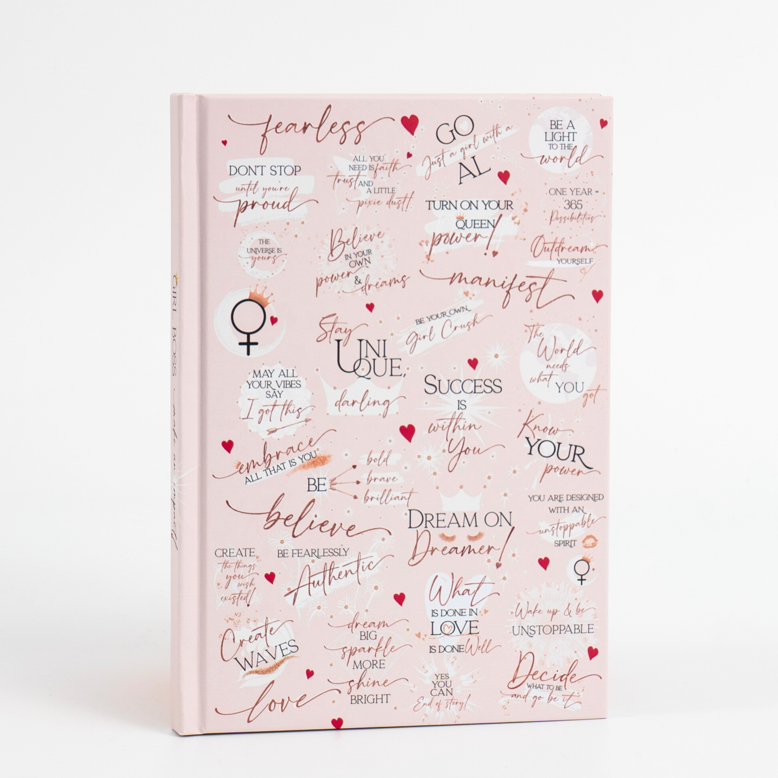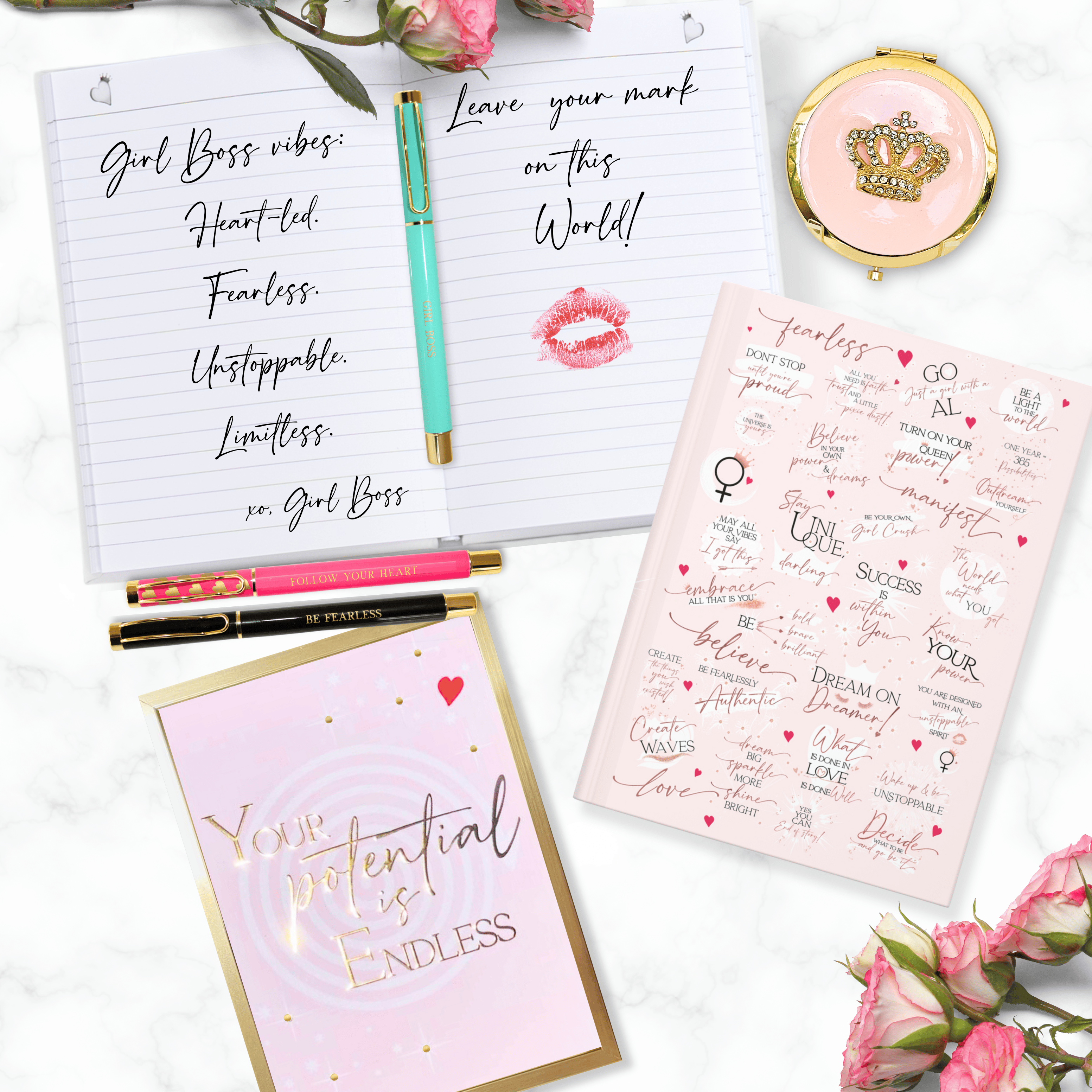 Bij Girl Power 24/7 ontwerpen we doelgerichte producten die vrouwen in staat stellen om moedig te leven, diep van zichzelf te houden en van binnenuit te stralen—elk uur van elke dag. Onze collecties zijn gevuld met motiverende boodschappen, oprechte details en prachtig vervaardigde ontwerpen die zijn gemaakt om vertrouwen, kracht en onbeschaamde zelfexpressie te inspireren. Opgericht door een trotse Latina-ontwerper en vrouwelijk eigendom bedrijf, is onze missie eenvoudig: dagelijkse momenten van vreugde, aanmoediging en onstuitbare energie aanwakkeren—24/7. Van onze bestverkochte roestvrijstalen waterflessen en motiverende pennensets tot compacte spiegels, inspirerende dagboeken en peel & stick behang bedekt met affirmaties, elk stuk is gemaakt als een dagelijkse herinnering aan de unieke kracht, talent en schoonheid van een vrouw. Wij geloven in de magie van kleine momenten—een ochtendmantra, een attent cadeau, een herinnering om je hart te volgen. Of het nu een citaat op een waterfles is of een behang dat een ruimte transformeert, onze ontwerpen spreken leven in je dag en weerspiegelen het licht van binnen.