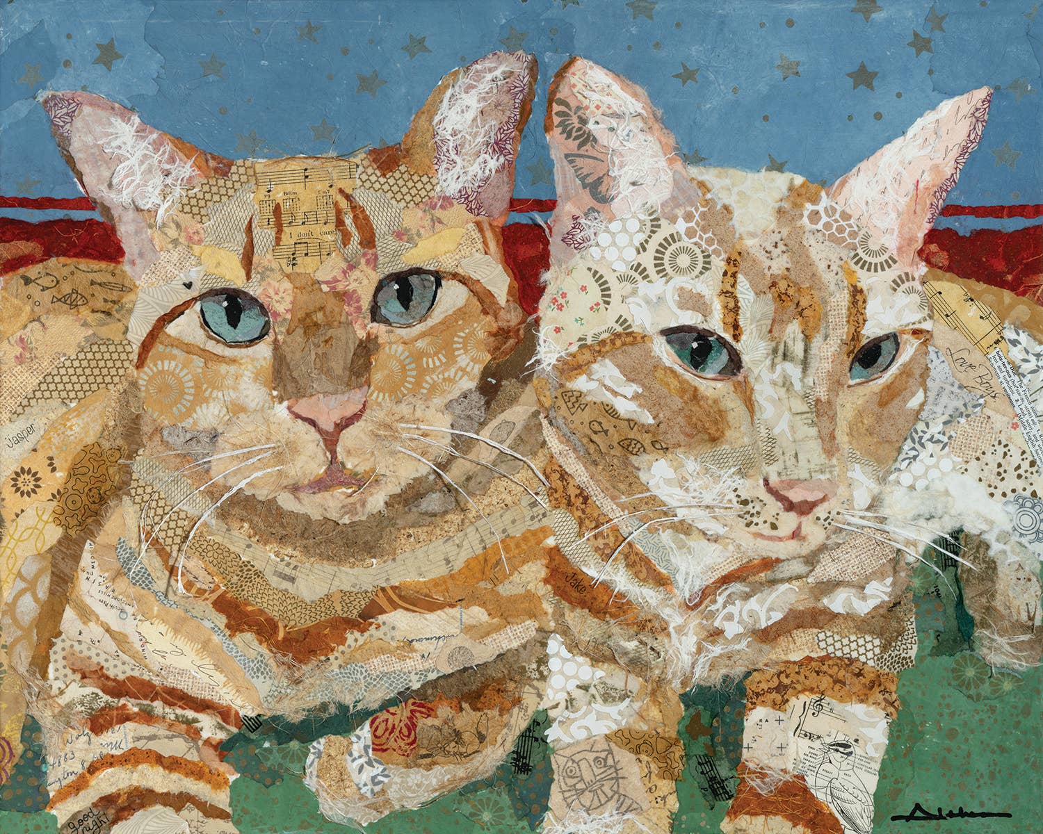 Hallo en welkom in mijn Art Althea collagestudio! Mijn naam is Althea Sassman en ik ben een hedendaagse kunstenaar uit de woestijn die lagen van kleur, patroon en textuur combineert om intrigerende kunstwerken te maken die volledig zijn gemaakt van een gescheurde papieren collage. Handgemaakt, handbeschilderd en gerecycled papier wordt gecombineerd met belangrijke tekst uit oude boeken, vintage postzegels en tijdloze muziekbladen. Elke originele collage is geïnspireerd en gemaakt vanuit mijn thuisstudio aan de voet van de woestijn in Arizona en dankzij jou zijn ze nu verkrijgbaar als prints in beperkte oplage voor reizen door de VS en daarbuiten! Art Althea giclées ('jee-clays') zijn inkjetafdrukken van archiefkwaliteit, van een professioneel gefotografeerd digitaal bestand met hoge resolutie op hoogwaardig artiestenpapier. Er zijn twee maatopties beschikbaar, waaronder een mat in wit voor een handige inlijsting in standaardformaat. Elk stuk is gesigneerd, betiteld en genummerd voordat het individueel wordt verpakt en rechtstreeks naar u wordt verzonden.