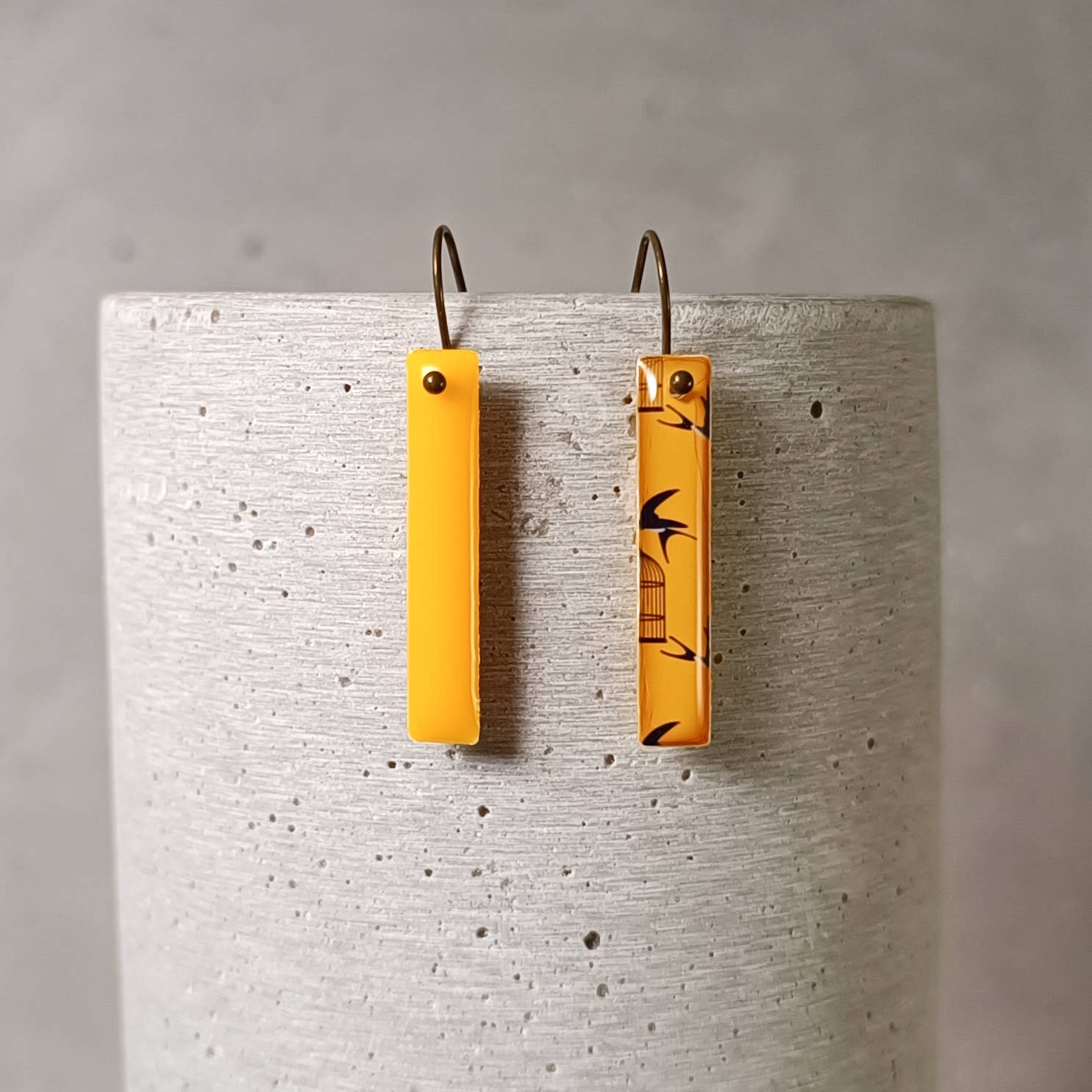 Artisanaal van kunst, het is in het hart van Poitou-Charentes, dat mijn werkplaats is gevestigd. Het is hier, in het centrum van Niort, dat ik sieraden in kleine series maak, met zorg, waarvan de meeste de bijzonderheid hebben omkeerbaar te zijn. Mijn sieraden combineren de lichtheid van papier en de sterkte van hars. Elk van hen is aan beide zijden geresineerd, zodat het aan de motiefzijde (exclusieve patronen die ik zelf maak) of effen kant kan worden gedragen, zodat de sieraden zich aanpassen aan uw wensen. Attent op Made in France, maak ik er een erezaak van om alleen met Franse leveranciers te werken wiens professionaliteit ik ken. Gehecht aan vakmanschap wil ik de waarden ervan verdedigen: — de valorisatie van knowhow — de kwaliteit van de producten — authenticiteit
