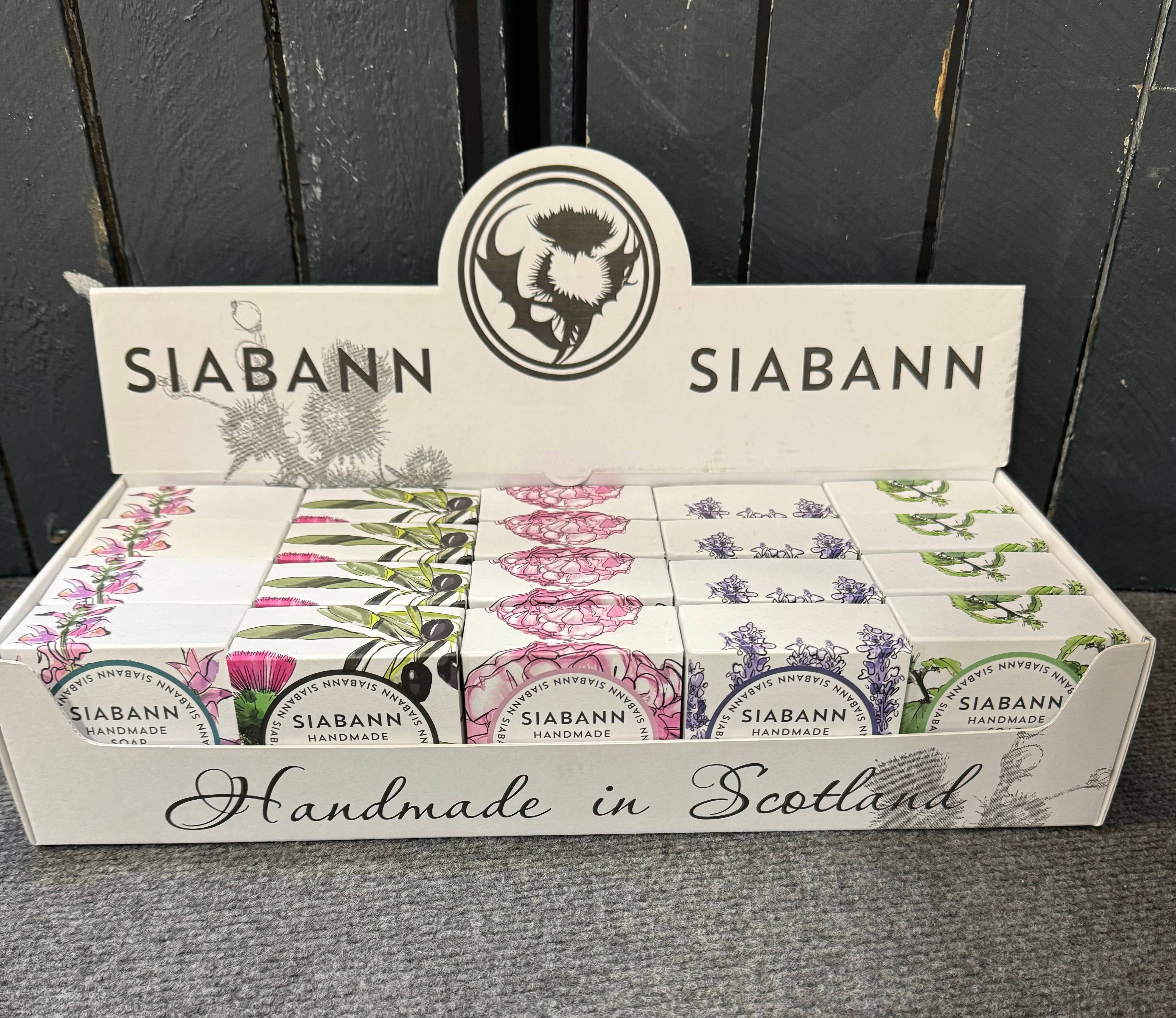 Luxe, natuurlijke huidverzorging met een Schotse twist. Uit de prachtige Ochil Hills in het hart van Schotland komt een innovatief nieuw huidverzorgings- en geschenkassortiment; luxe, natuurlijke producten met een uitgesproken Schotse twist. Siabann - dat Gaelic is voor zeep - is een constant evoluerend merk van Fiona Ritchie, oprichter van de Ochil Soap Company, bekend om zijn fantastische kleine repen handgemaakte gemarmerde en geurende Schotse zeep. We werden geïnspireerd om het Siabann-assortiment te lanceren door onze liefde voor een beetje luxe en onze passie voor de eigenschappen en goedheid van natuurlijke oliën en boters. Fiona heeft een prachtig verpakte, prachtig geurende, volledig natuurlijke en betaalbare collectie crèmes, serums, vochtinbrengende crèmes en zeep gecreëerd. Het geheime ingrediënt in allemaal is Thistle Oil, bekend om zijn therapeutische herbalancerende eigenschappen. Elk van de producten roept het prachtige Schotse landschap op dat haar assortiment heeft geïnspireerd, en wordt met de hand gemengd in kleine batches om de hoogste kwaliteit te garanderen.