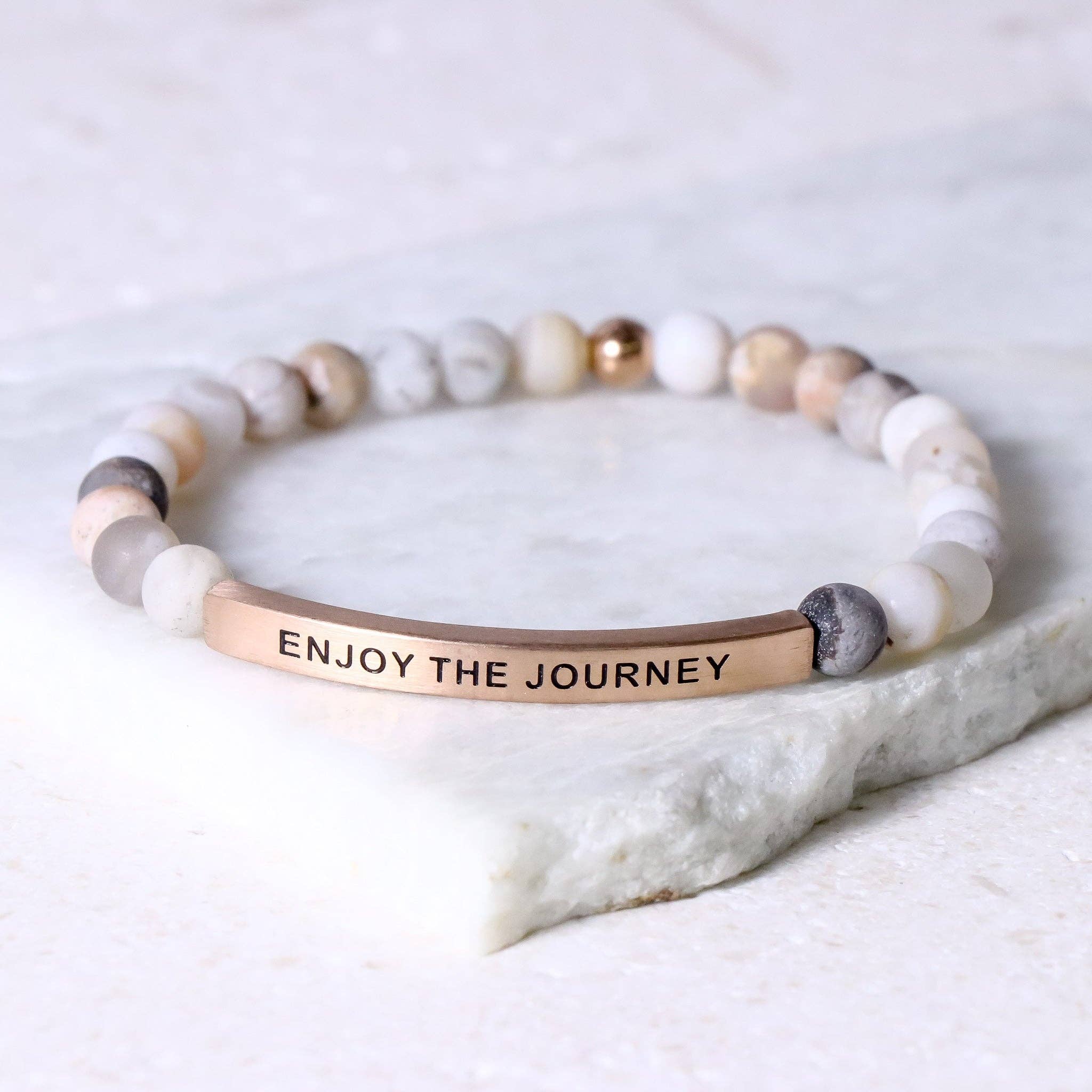 We geloven dat als we allemaal een beetje vriendelijkheid, hoop en liefde kunnen uitstralen, dit een rimpeleffect van positiviteit zal creëren. We hebben 3 collecties positieve gravures gemaakt om samen te werken met mensen in hun intentie om een verschil te maken in zowel hun eigen leven als dat van de mensen om hen heen. Een kleine herinnering die je om je pols kunt dragen om je gedurende de dag te inspireren. Wij geloven dat een negatieve geest nooit een positief leven zal opleveren. Om een merkbare verbetering van onze gezondheid, relaties en financiën te bereiken, moeten algemene denkpatronen worden onderbroken en opnieuw worden bedraad. Wij geloven dat het leven voor 10% bestaat uit wat er met je gebeurt, en voor 90% uit hoe je erop reageert en dat geluk een keuze is die je maakt en niet alleen een gevoel dat je hebt. De woorden op deze armbanden zijn dus bedoeld om ons aan te moedigen en te motiveren om onze reacties te transformeren en onze reacties te verbeteren.