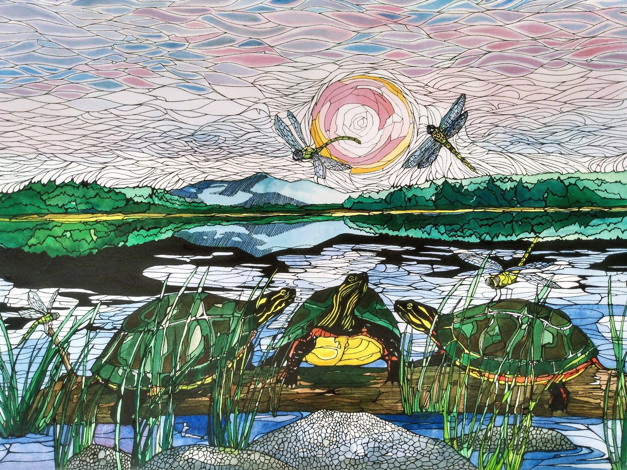Elk kunstwerk heeft een verhaal te vertellen, het is mijn taak om inkt en kleur op papier te zetten om dat verhaal te vertellen. Thuis geschoold op het platteland van Maine, had ik het geluk onbeperkte uren in veld en bos door te brengen en onze wereld te bestuderen met aandacht die alleen kinderen kunnen. Ik stop nooit met het stellen van vragen, noch mijn kunst. Elk stuk heeft een verhaal en elke persoon hoort een ander verhaal. Mijn kaarten worden lokaal gedrukt op gerecycled papier en verpakt in een biologisch afbreekbare beschermhoes.