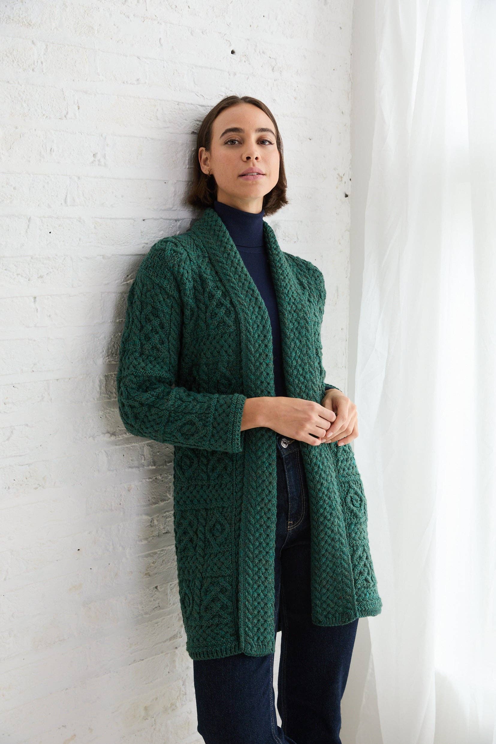 Onze familie begon met het breien van Aran-truien in 1965 en sindsdien zijn we de bewaarders van ons vak. We maken Aran-breigoed dat door de eeuwen heen in het westen van Ierland en de wereld is gedragen, een erfgoed dat de tand des tijds doorstaat, een icoon van Ierland. We zijn gepassioneerd om ons vak levend te houden en dit unieke en natuurlijke product aan de wereld te presenteren. Van een bescheiden begin is Aran Woollen Mills uitgegroeid tot een gevestigde fabrikant van breigoed in Ierland en marktleider op het gebied van Aran-wollen kleding, waarbij bij de creatie van onze Aran-truien uitsluitend gebruik is gemaakt van lokaal vakmanschap en hoogwaardige natuurlijke materialen. Ons assortiment is individueel ontworpen, zorgvuldig ontworpen en vakkundig vervaardigd in Westport aan de Wild Atlantic Way in Ierland, en biedt prachtig geproduceerde handbreisels, Donegal-garens en stukken lamswol. Creativiteit, innovatie en passie vormen de kern van ons bedrijf. We zijn er trots op dat we kledingstukken maken die stijlvol en toch duurzaam, exclusief en ethisch zijn; en vooral trouw aan het erfgoed en de geschiedenis van Aran.