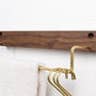 Ontdek ons multifunctionele handdoekenrek. Het kan ook dienst doen als bekerhouder of kastorganizer door S-haken aan de koperen staaf toe te voegen. De elegante beukenhouthouder is verkrijgbaar in beech walnut of Black Walnut beits naar keuze. Sterk, duurzaam en ontworpen om even stijlvol als functioneel te zijn, dit handdoekenrek is ideaal voor een badkamer, slaapkamer of keuken. Als je iets hebt om op te hangen, is dit knappe rek klaar voor de taak.
