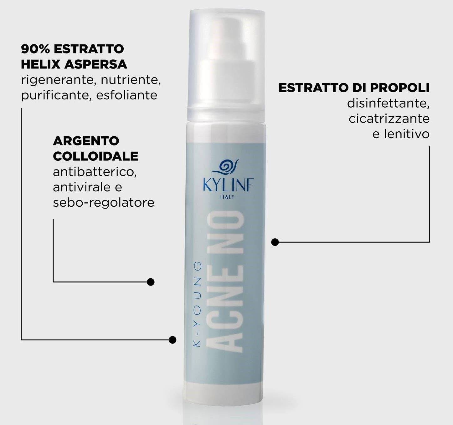 NATUURLIJKE COSMETICA MET HOGE WERKZAAMHEID. Dankzij een zorgvuldige selectie van de beste grondstoffen met bewezen effectiviteit, zijn KYLINF-producten cosmetica rijk aan zorgvuldig geselecteerde actieve ingrediënten die voldoen aan de behoeften van je huid in alle levensfasen. De welzijnsprotocollen van Kylinf zijn ontworpen met het oog op de behoeften van je huid en bieden een dagelijkse routine en wekelijkse behandelingen. Ontdek hier het SKIN CARE-protocol dat het beste bij jou past: - Skin Care Jeugdacne en gevoelige huid: K-Young spray + Laliz crème + E-Gho herstellend supplement. - Skin Care of jonge huid (tot 40 jaar): K-Linf spray + Laliz crème + LiftOr ogen + E-Gho herstellend supplement. - Skin Care rijpere huid (na 40 jaar): K-Linf spray + Fillxtens + Luce crème + LiftOr ogen + Raise Up Mask + E-Gho/Reljef herstellend supplement. - Skin Care Man: K-Linf aftershave spray + LiftOr ogen + Laliz crème/Luce crème + Fillxtens + E-Gho/Reljef herstellend supplement. - Skin Care Premaman: K-Linf spray voor striae op buik, borsten en heupen + Reljef supplementen voor maagzuur + Fillxtens + LiftOr ogen + Laliz crème/Luce crème.