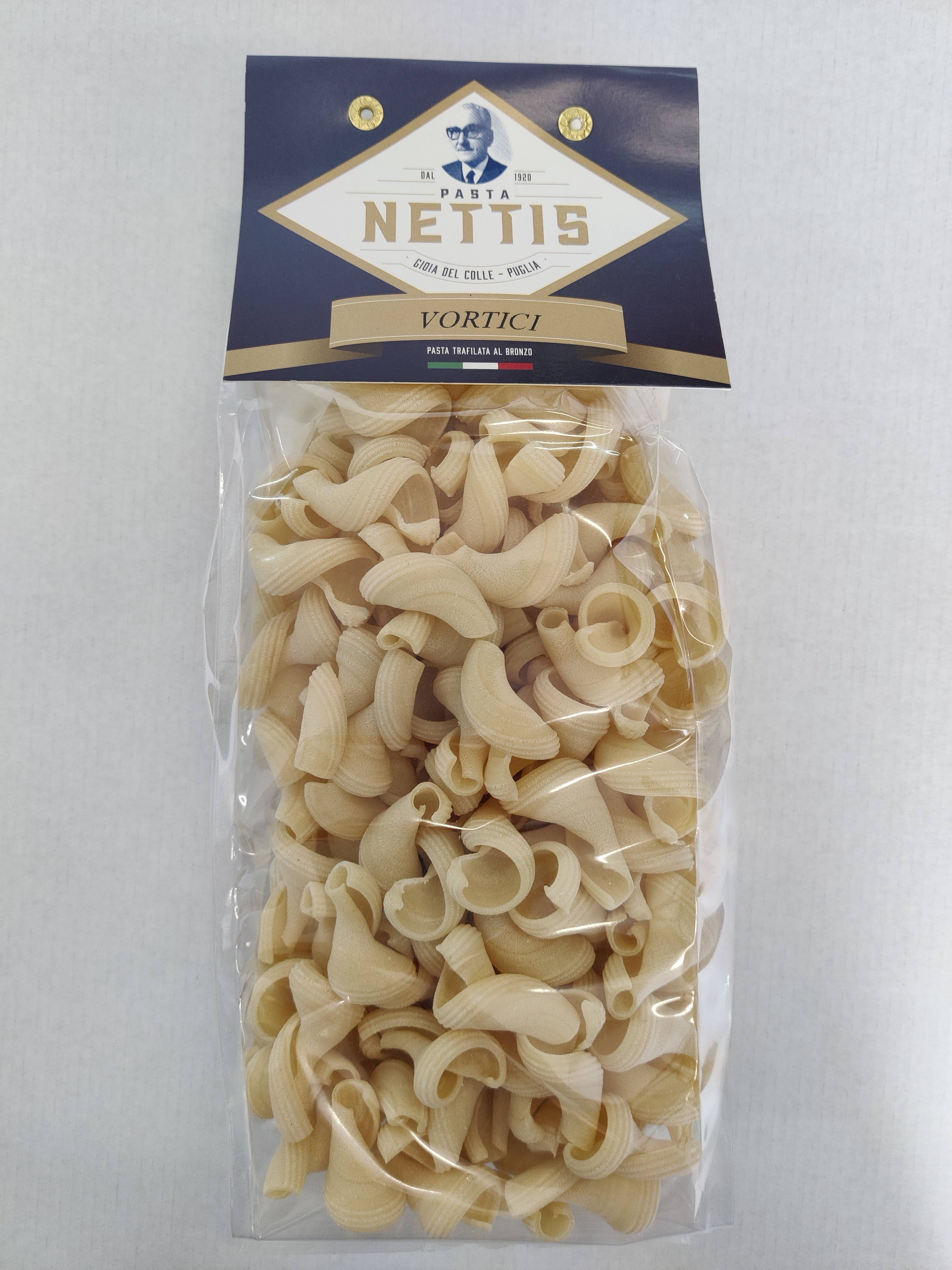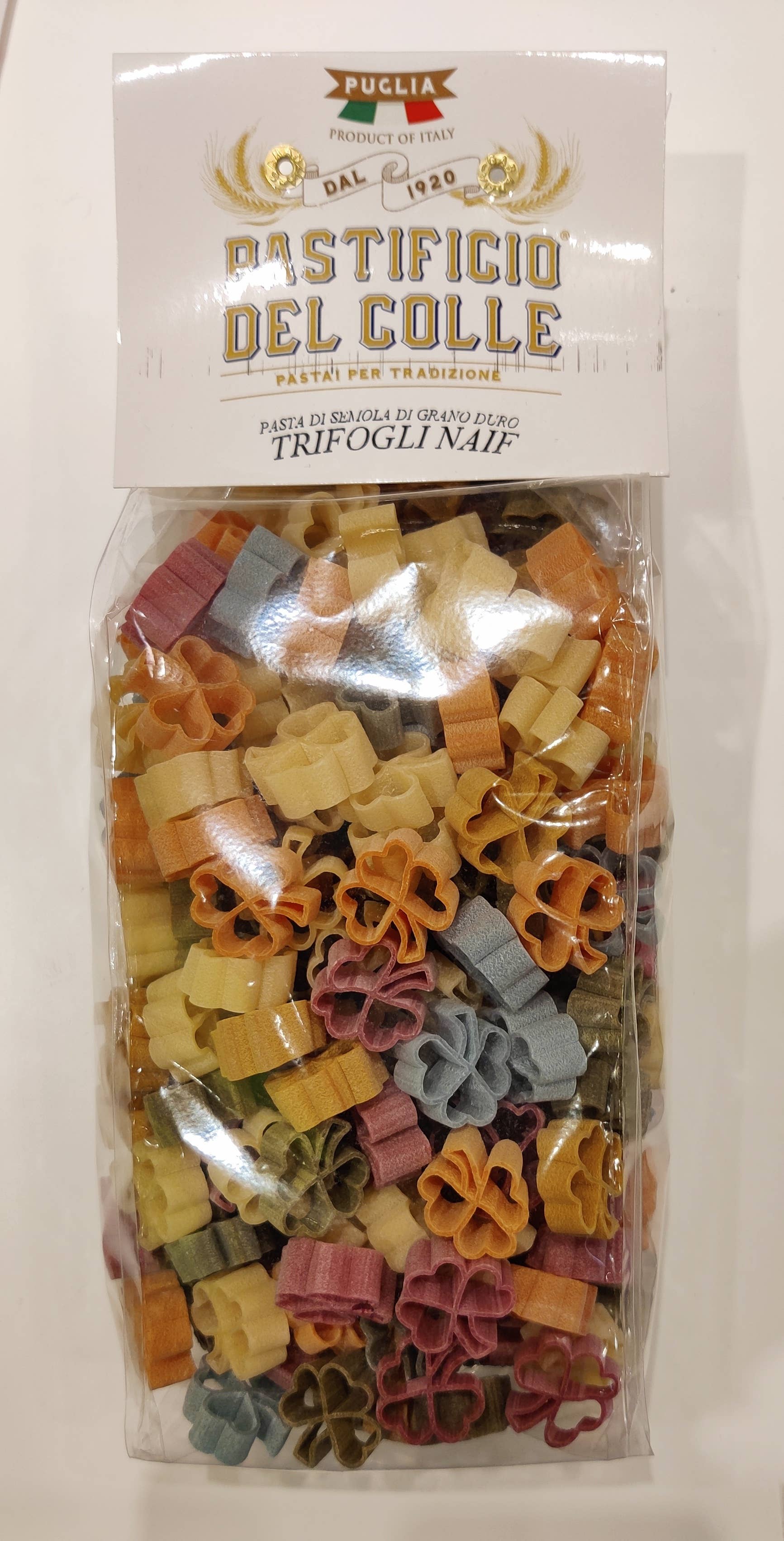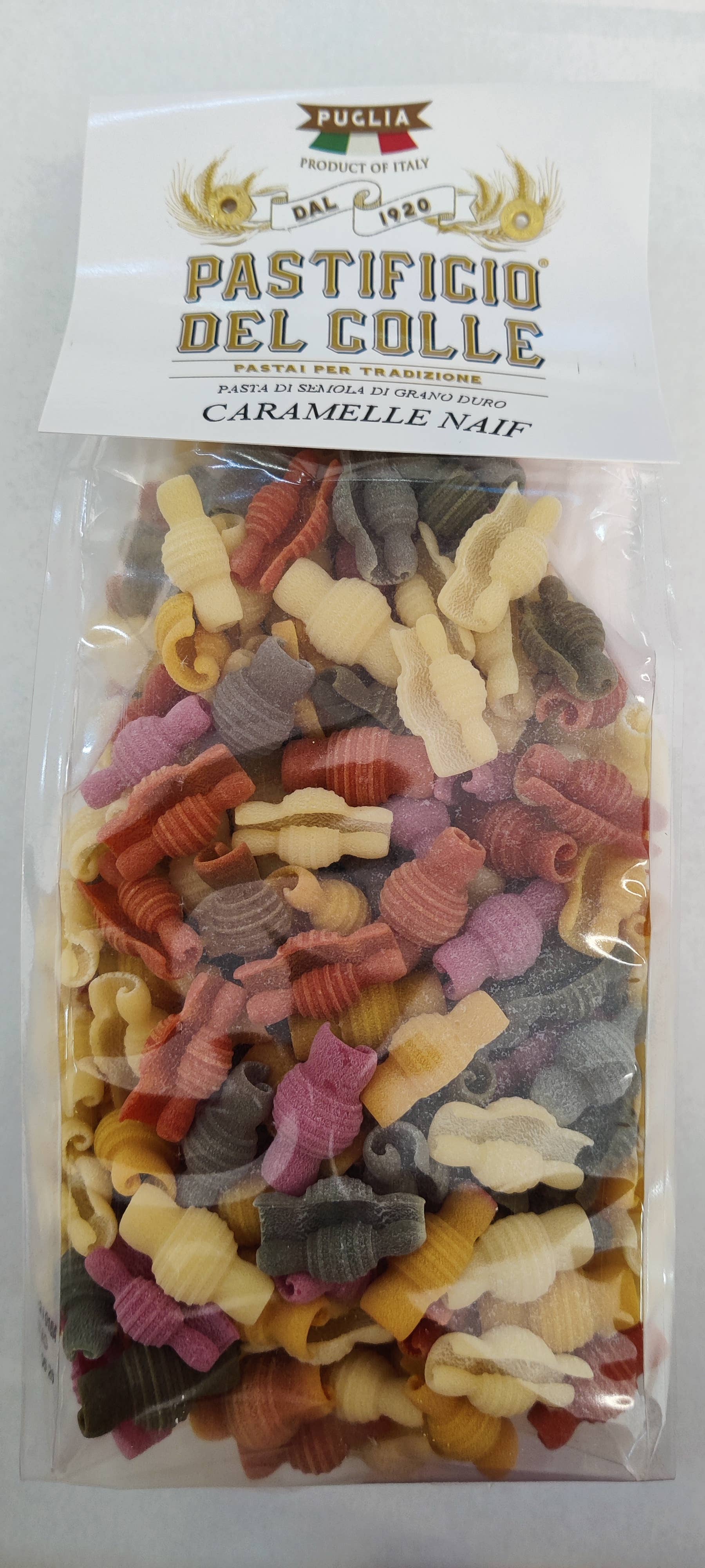 Apulië, de zonnige zuidelijke regio van Italië, biedt de ideale plek voor de productie van de beste pasta. Pastificio de Colle heeft een uitstekende positie verworven tussen de beste ambachtelijke pastafabrieken in Italië. De heer Vito Nettis, de huidige eigenaar, is de neef van Vito Nettis, die bijna in de jaren twintig verschillende voedselactiviteiten uitvoerde. De verwerking van onze pasta geeft de voorkeur aan ambachtelijke technieken, het deeg handmatig bewerken of bronzen matrijzen gebruiken waardoor het een ruw product is, geschikt voor het bevatten van alle soorten sauzen. We gebruiken harde tarwe van hoge kwaliteit, 100% Italiaanse en natuurlijke kleurstoffen: kurkuma voor de gele kleur, spinazie voor het groen, rode biet voor het violet, paprika voor de sinaasappel, spirulina en appelextract voor het blauw en sepia voor het zwart. Alle vormen worden langzaam gedroogd gedurende 36/40 uur bij een lage temperatuur van max. 39° C, waardoor het product zijn organoleptische eigenschappen kan behouden. Proef onze gekleurde, gearomatiseerde, traditionele witte en volkoren pasta, je zult je zeker nieuw voelen!