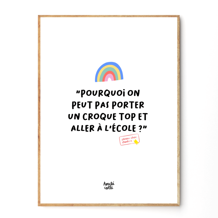 Touché Collé is het 100% feel-good lifestylemerk voor iedereen die de ziel van hun kind cultiveert! Selectie van alledaagse voorwerpen die opnieuw betoverd zijn door grappige, poëtische, filosofische, geschilderde, gezwollen en doorweekte woorden van kinderen. Van kant-en-klaar - la-joie popbriefpapier, gedrukt op een vakmanprinter in het hart van Parijs, en rocklooks in biologisch katoen met coole berichten en bronnen van mojo. Kortom, de decoratieve touch die opvalt en de basis wordt wakker als nooit tevoren! Alle kleine schokzinnen die op onze producten worden benadrukt, zijn woorden rechtstreeks uit de mond van snotaap. En ja, je hoeft geen Booba of Florence Foresti te zijn om uit de scheurende punchlines te komen! Je moet gewoon een kind zijn met een aangeboren geschenk voor verwondering.