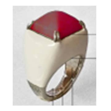 Echte perzikbloesems op lakverf en afgewerkt met hars in een uniek ontworpen 12 karaats vergulde tinnen zetting.