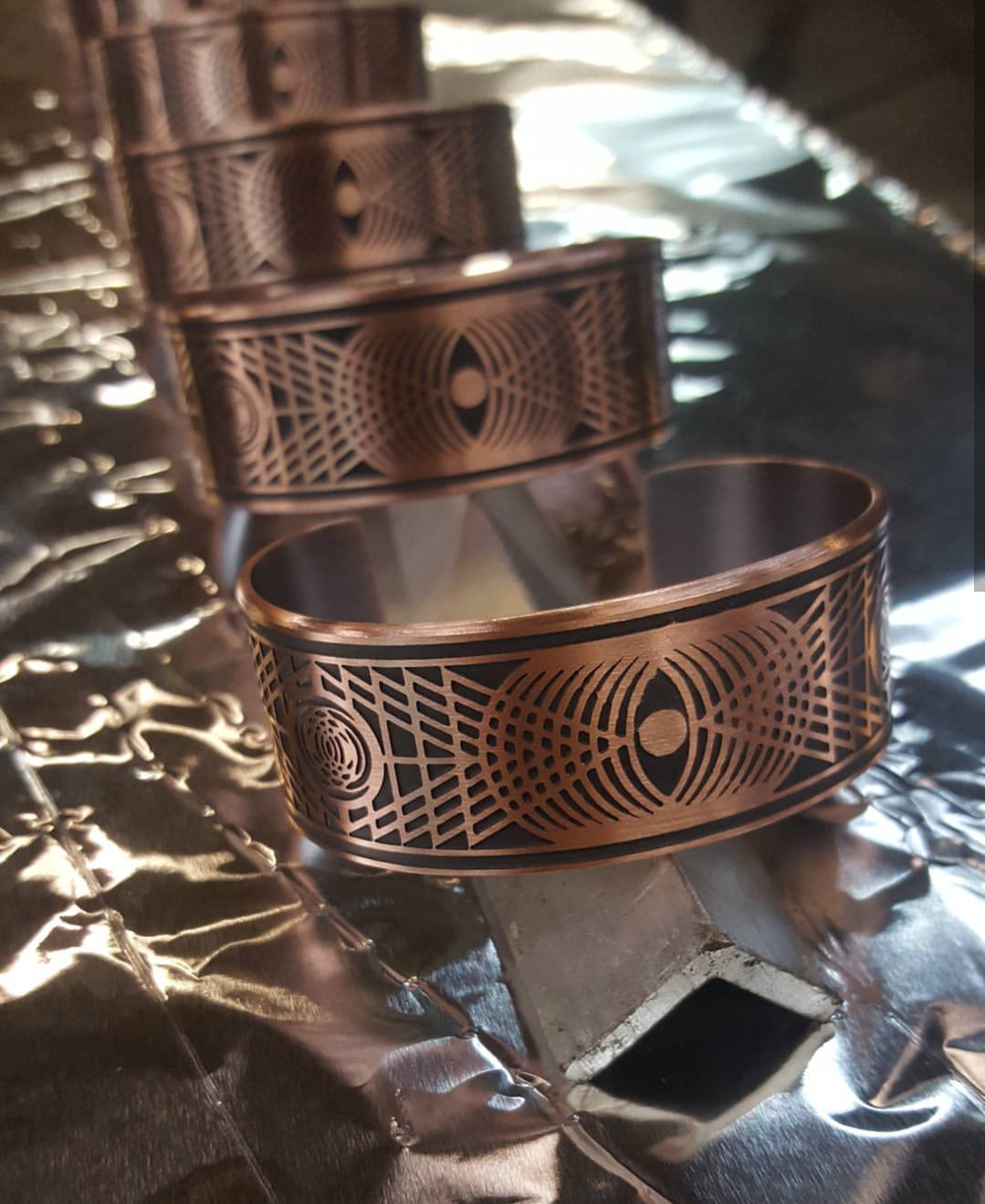 Geëtste koperen of bronzen en smaragdgroene kwartstalisman op een 21 „of 28” koperen slangenketting. Houd er rekening mee dat ze vanwege de aard van stenen in kleur kunnen variëren, enz., Waardoor ze allemaal uniek zijn.