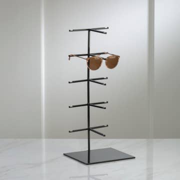 Toon of bewaar tot 5 paar zonnebrillen of andere brillen op deze kleine maar stevige standaard. Perfect om te gebruiken op een tafelblad of aanrecht. Voorzien van een metalen basis van 1/4" voor stevigheid. De standaard is 18" hoog; de armen zijn 6,25" lang met 3,25" ruimte tussen de armen. De voorste armen zijn 4,25" breed. - Ideaal voor thuis- en winkelgebruik - Compact stevig ontwerp - Perfect om te gebruiken op een tafelblad of aanrecht - Voorzien van een metalen basis van 1/4" - Standaard is 18" hoog - Horizontale armen zijn 6,25" lang met 3,25" ruimte tussen de armen - Voorste armen zijn 4,25" breed - Beschermende pads onder de basis - Geen montage vereist