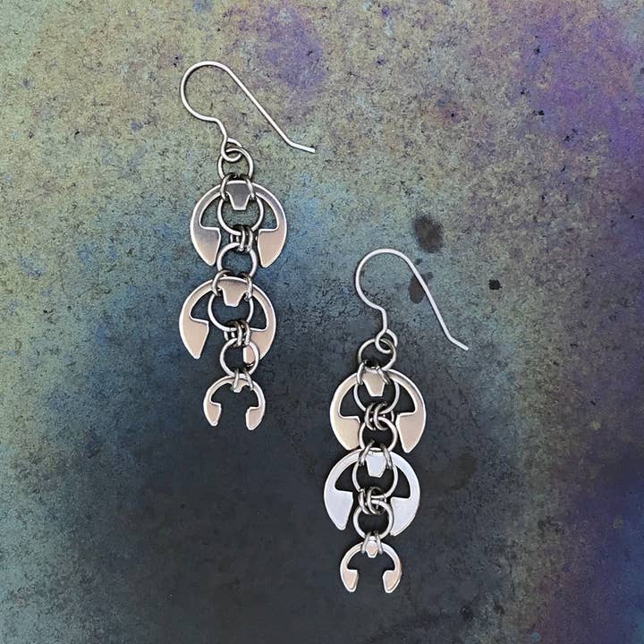 Kleine moderne cirkel bungelt geaccentueerd met Tsjechisch glas, deze kleine oorbellen maken een kleurrijk display. Roestvrijstalen hardware, met de hand verbonden met titanium, geaccentueerd met Tsjechisch glas, op hypoallergene titanium oordraden. Artisan gemaakt in de VS. Tsjechische glaskleuren en afwerkingen kunnen enigszins variëren.